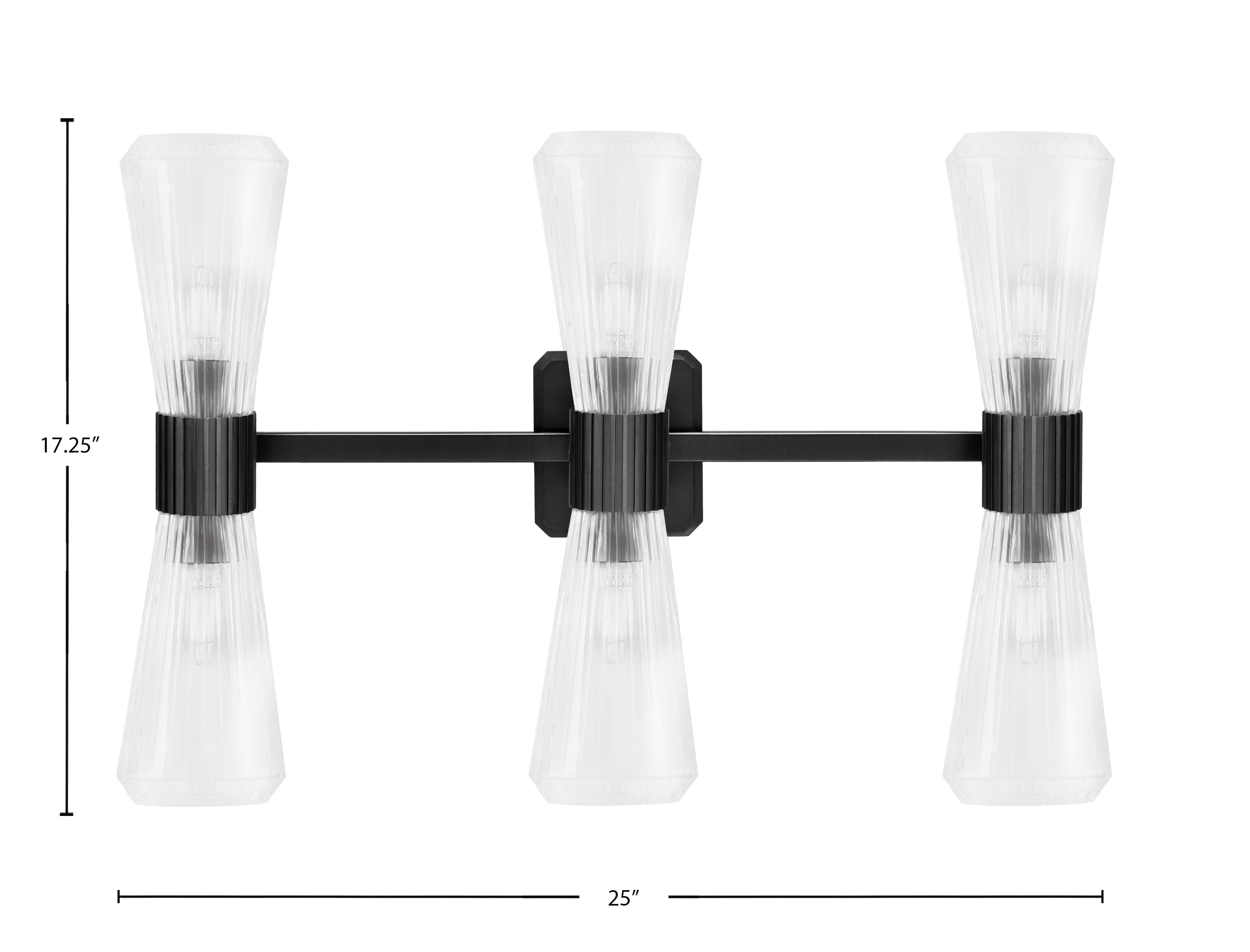 Toltec Lighting 4826-MB-880 Everleigh 6 Light Bath Bar, Matte Black Finish, 4″ Clear Ribbed Glass