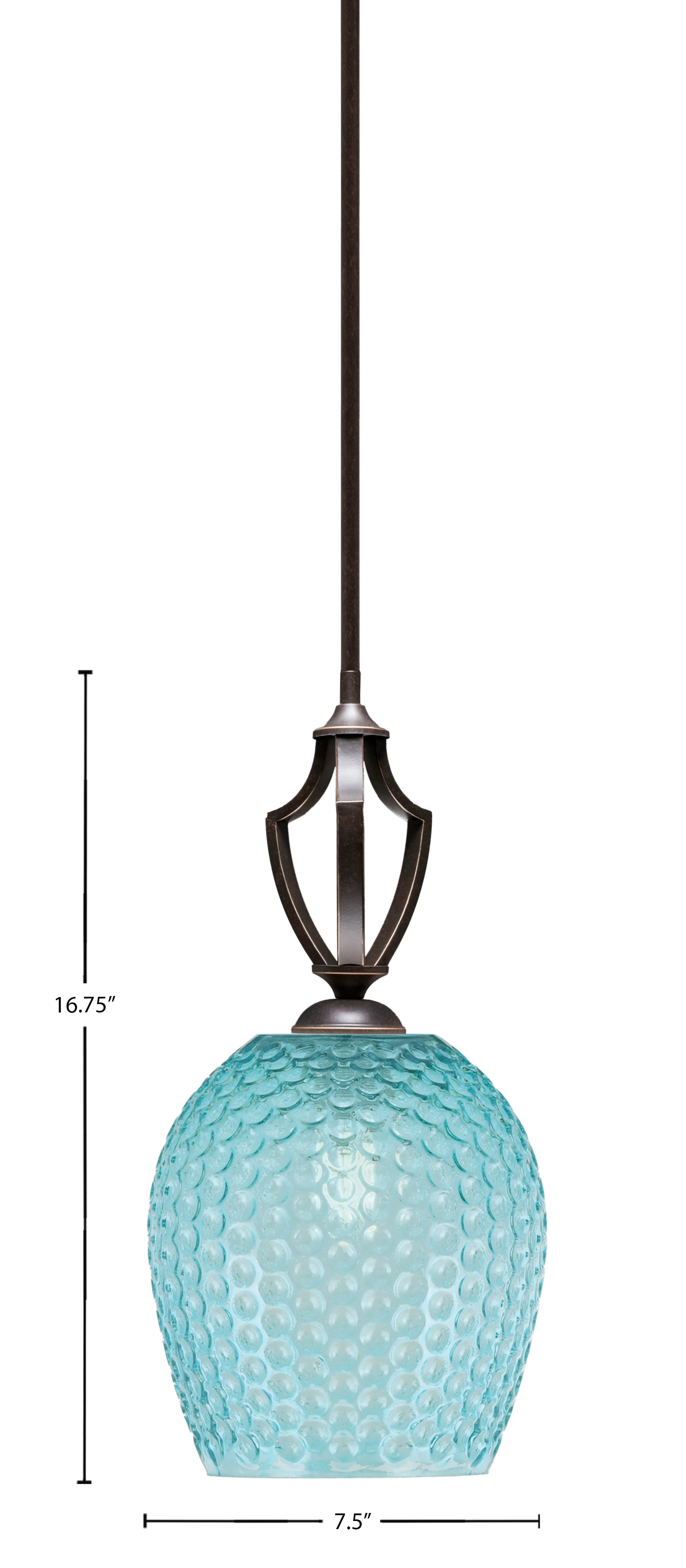 Toltec Lighting 561-DG-4905 Zilo Stem Hung Mini Pendant, Dark Granite Finish, 7.5″ Turquoise Textured Glass