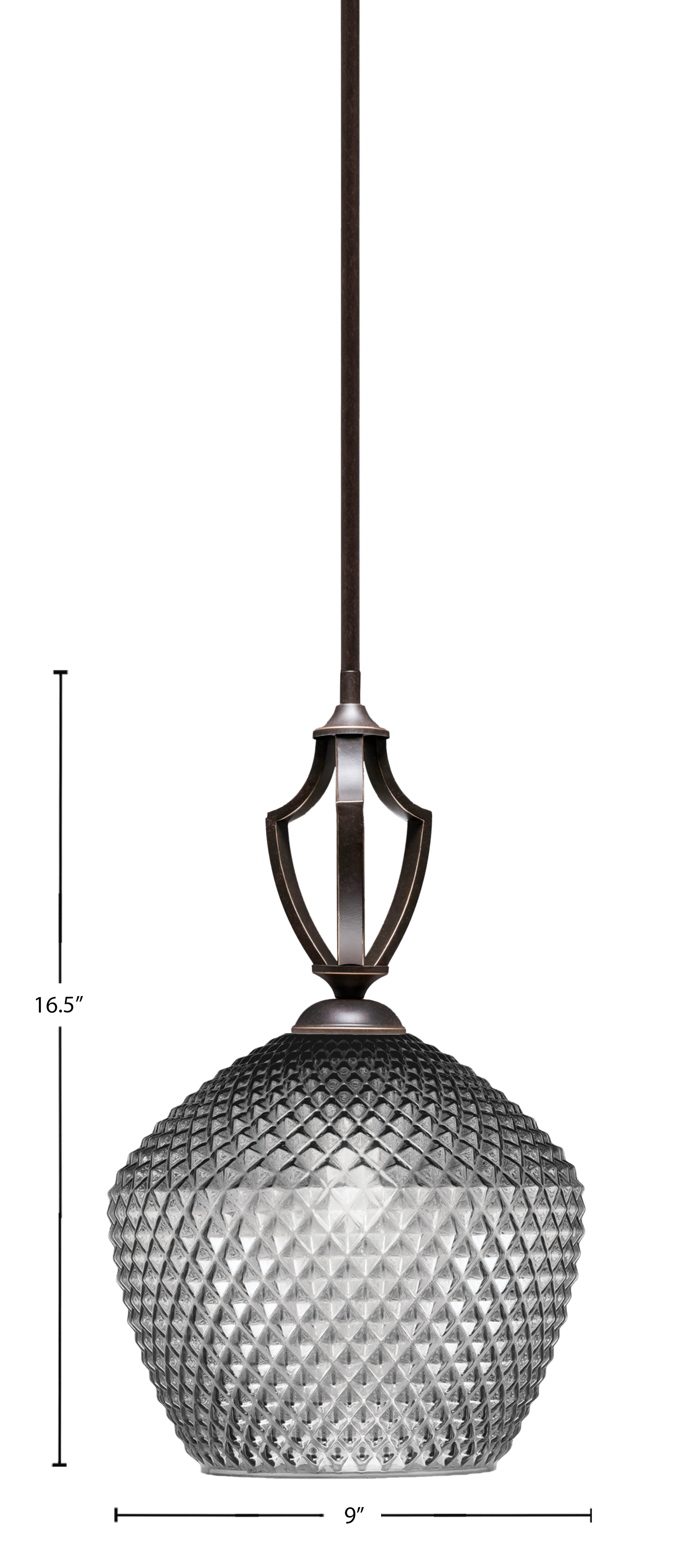 Toltec Lighting 561-DG-4922 Zilo Stem Hung Mini Pendant, Dark Granite Finish, 9″ Smoke Textured Glass