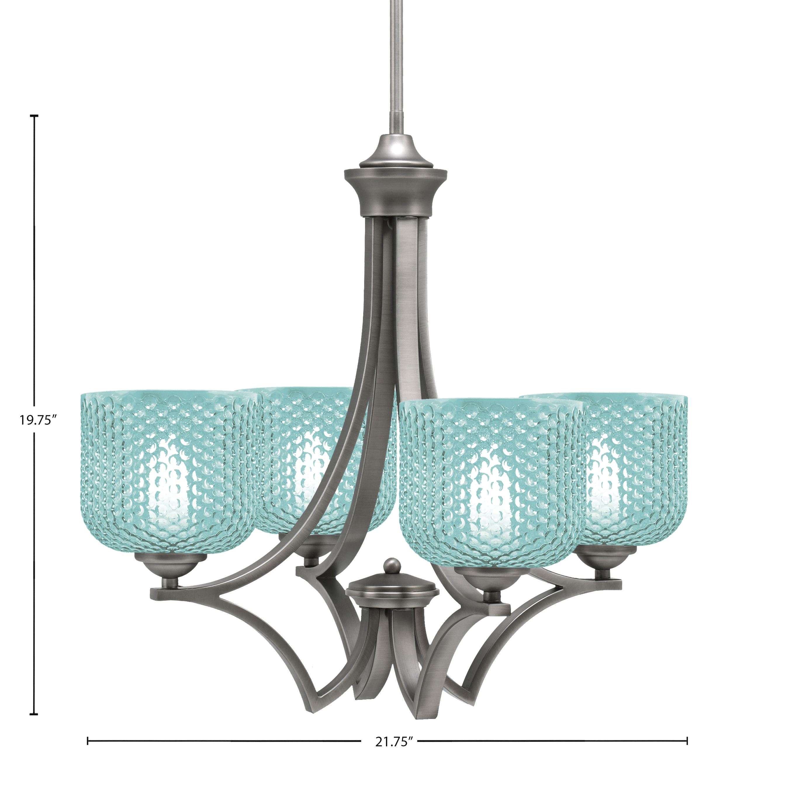 Featuring a refined graphite frame paired with 6″ turquoise textured glass, this 4-light uplight chandelier fills your room with fresh, diffused light and lively color. The interplay of dark metal and bright glass creates a dynamic contrast that elevates modern d‚Äö√Ñ√∂‚àö‚Ć‚àö‚àǬ¨¬®¬¨¬©cor with bold style. Ideal for those seeking to brighten spaces with both sophistication and energetic vibrance.