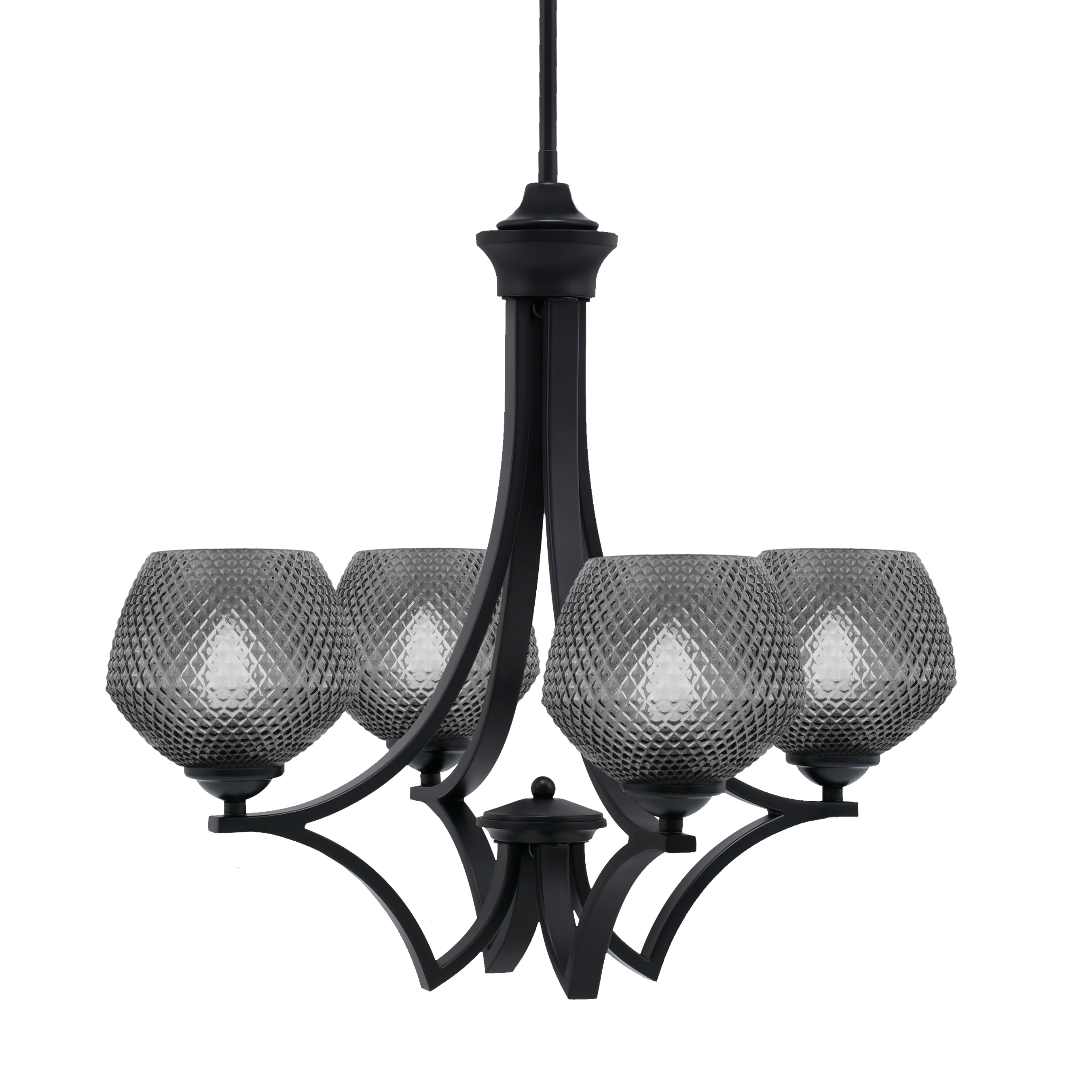Toltec Lighting 564-MB-4622 Zilo 4 Light Uplight Chandelier, Matte Black Finish, 6″ Smoke Textured Glass