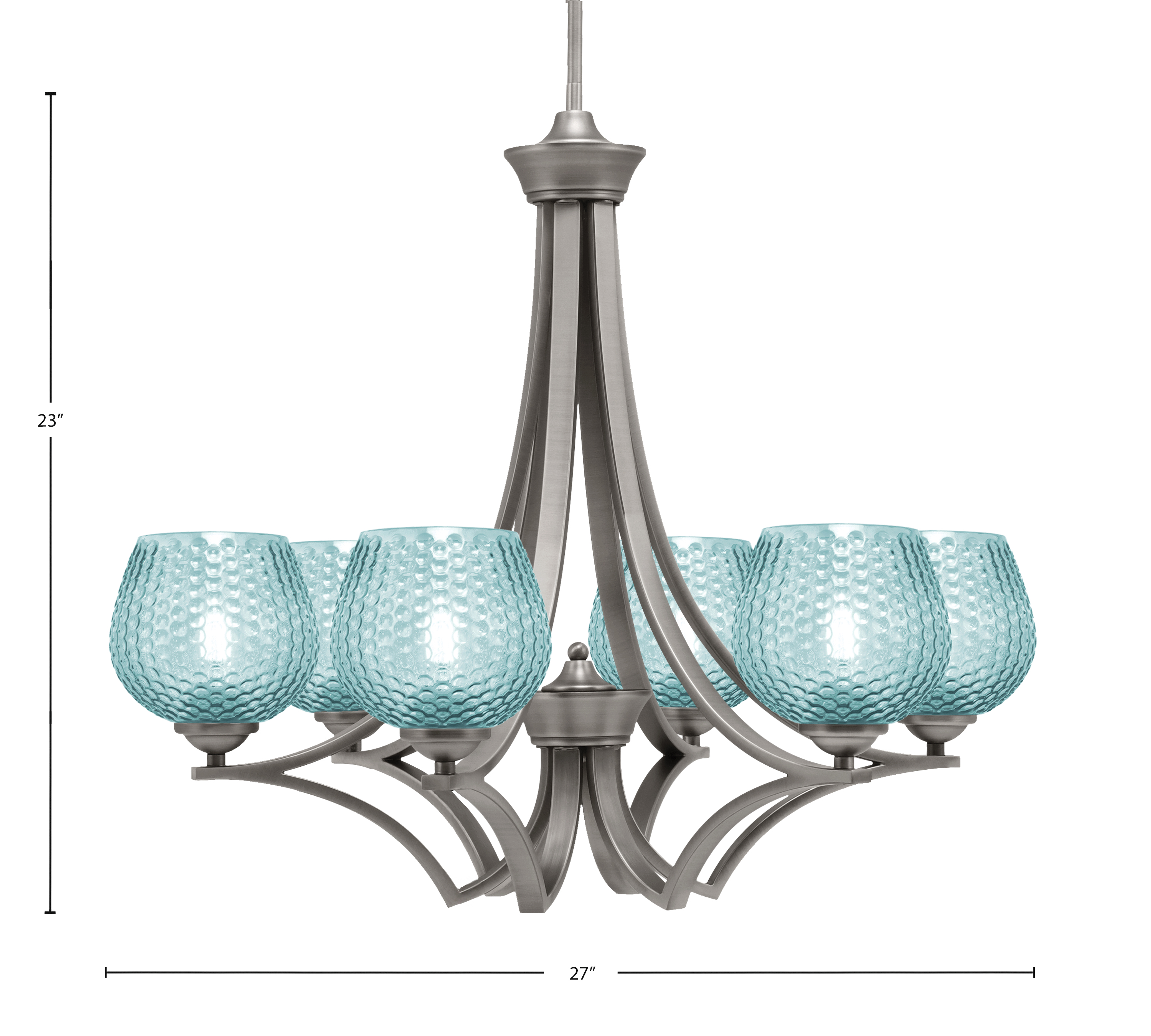 Toltec Lighting 566-GP-4605 Zilo 6 Light Uplight Chandelier, Graphite Finish, 6″ Turquoise Textured Glass