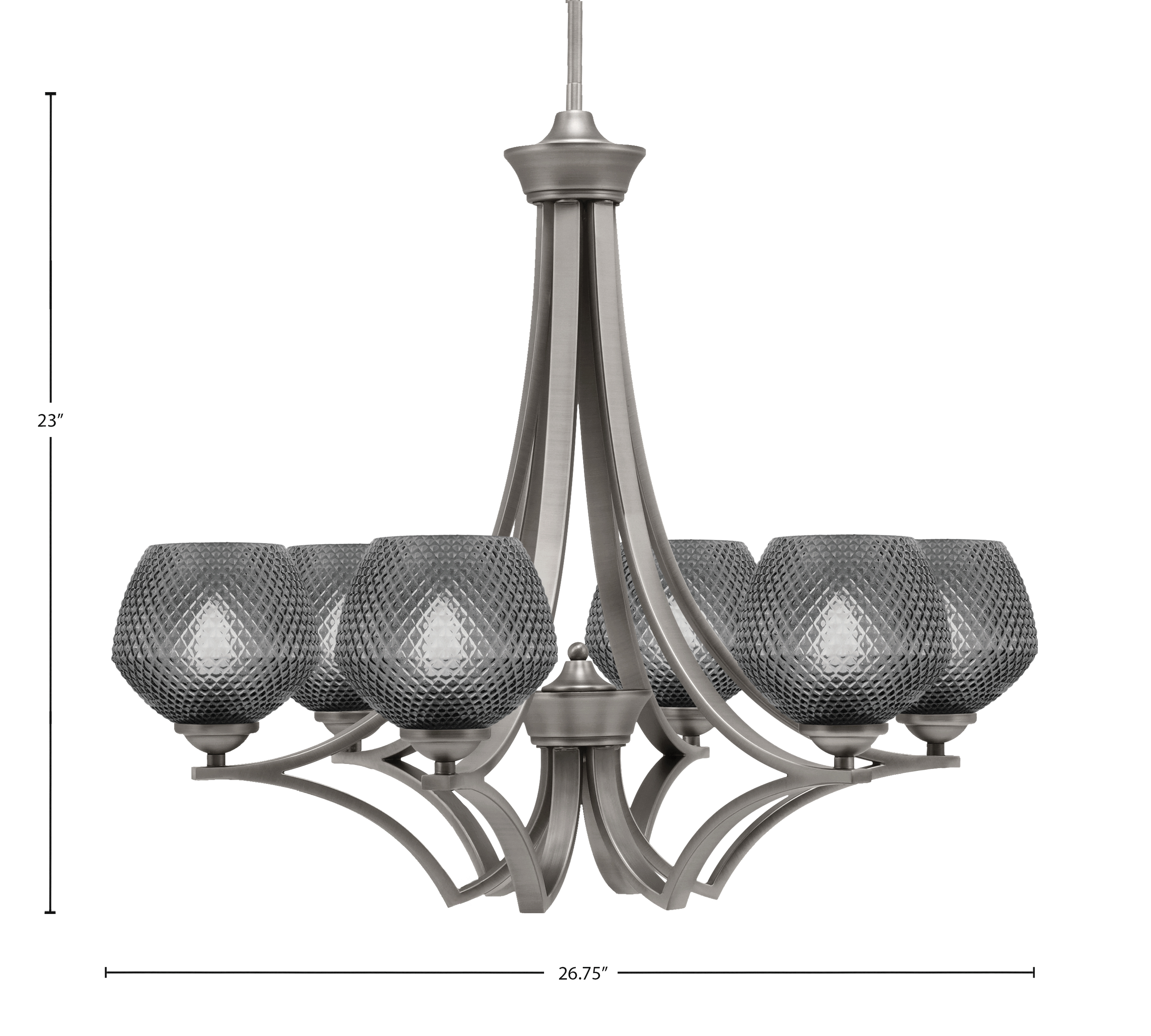 Toltec Lighting 566-GP-4622 Zilo 6 Light Uplight Chandelier, Graphite Finish, 6″ Smoke Textured Glass