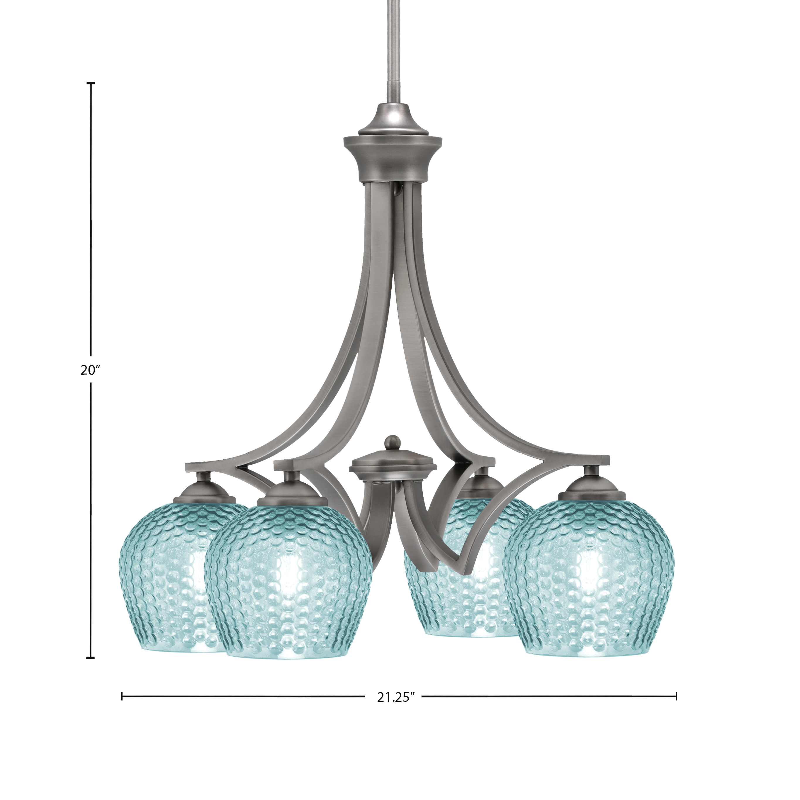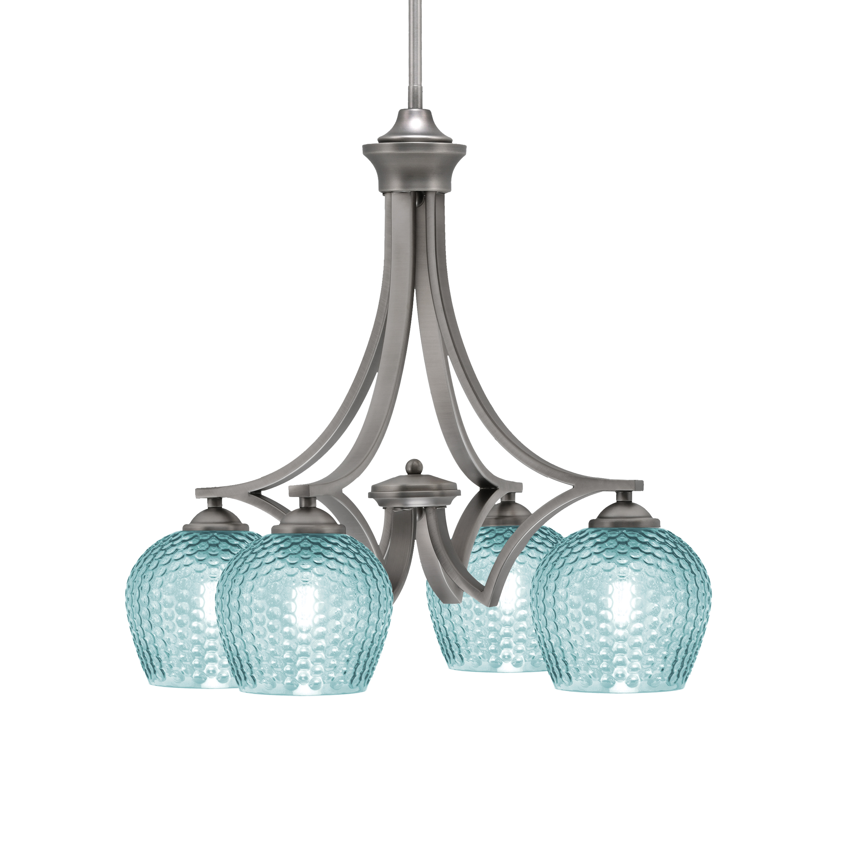 Brighten your space with the Zilo 4 Light Downlight Chandelier. Its deep Graphite frame sets a sophisticated tone, beautifully contrasted by four 6″ Turquoise Textured Glass shades that diffuse light into a captivating wash of color. Ideal for contemporary or eclectic interiors, it‚Äö√Ñ√∂‚àö√ë‚àö‚àÇ‚Äö√†√∂‚àö√´‚Äö√†√∂¬¨‚Ä¢s a statement piece that effortlessly balances elegance and fun.