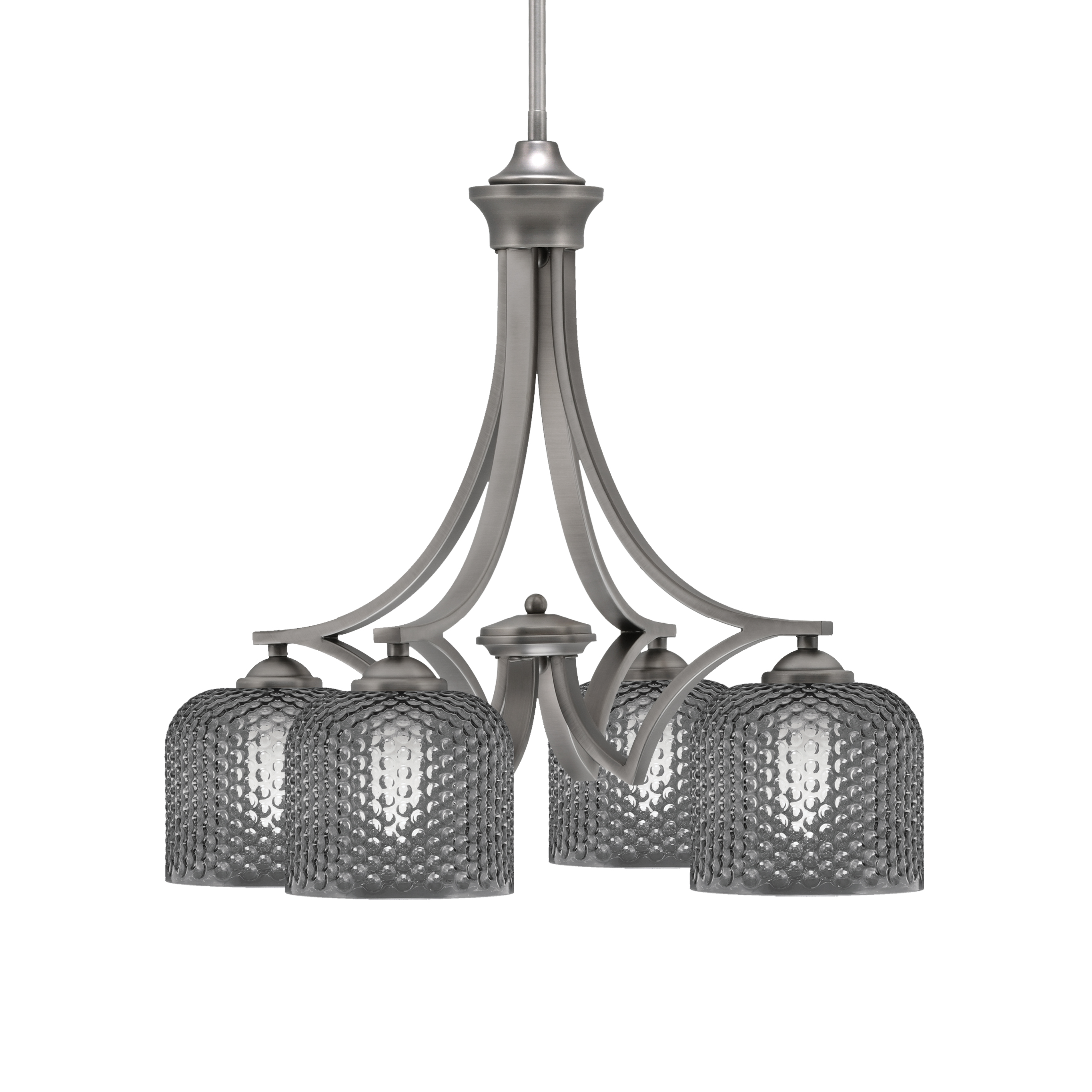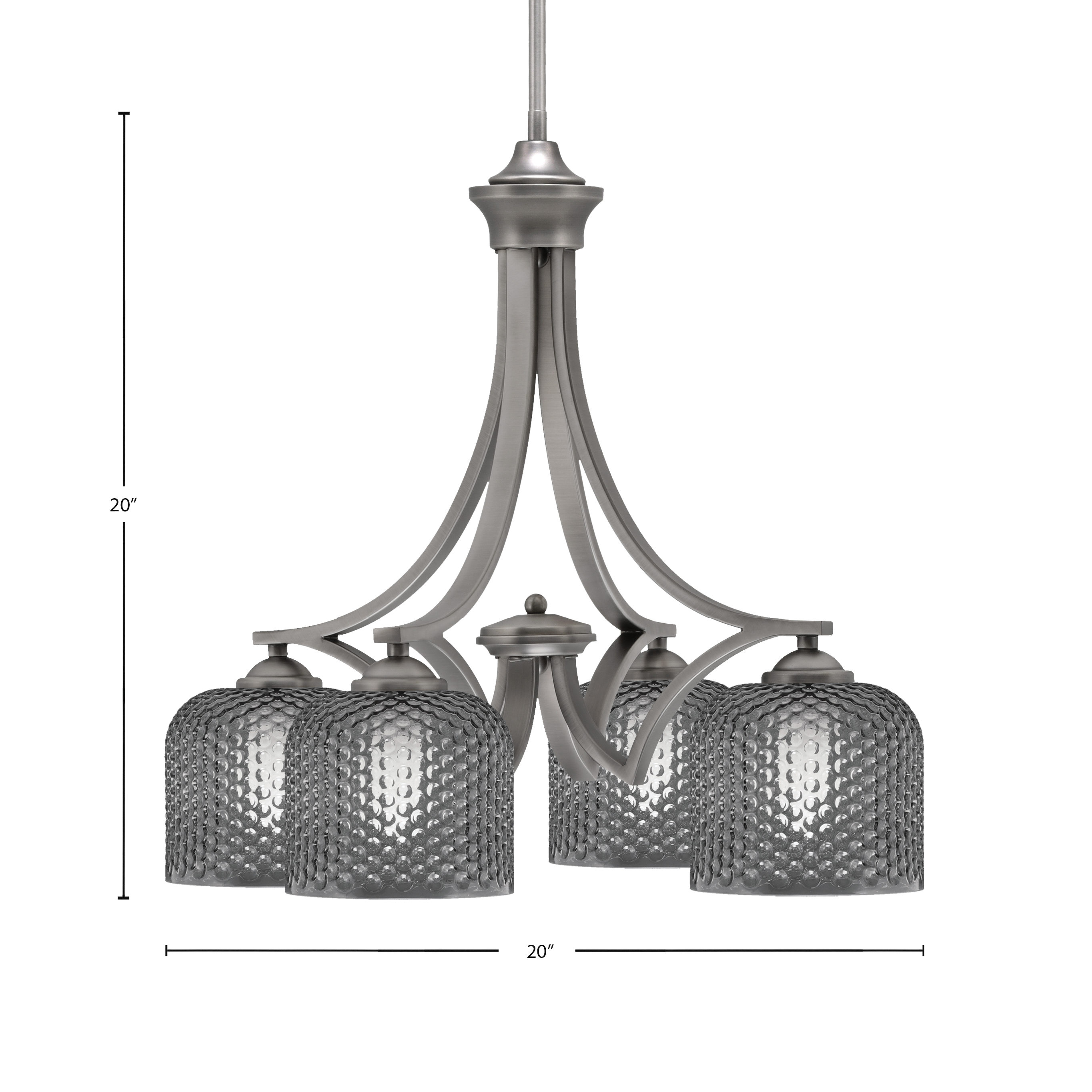 Toltec Lighting 568-GP-4612 Zilo 4 Light Downlight Chandelier, Graphite Finish, 6″ Smoke Textured Glass
