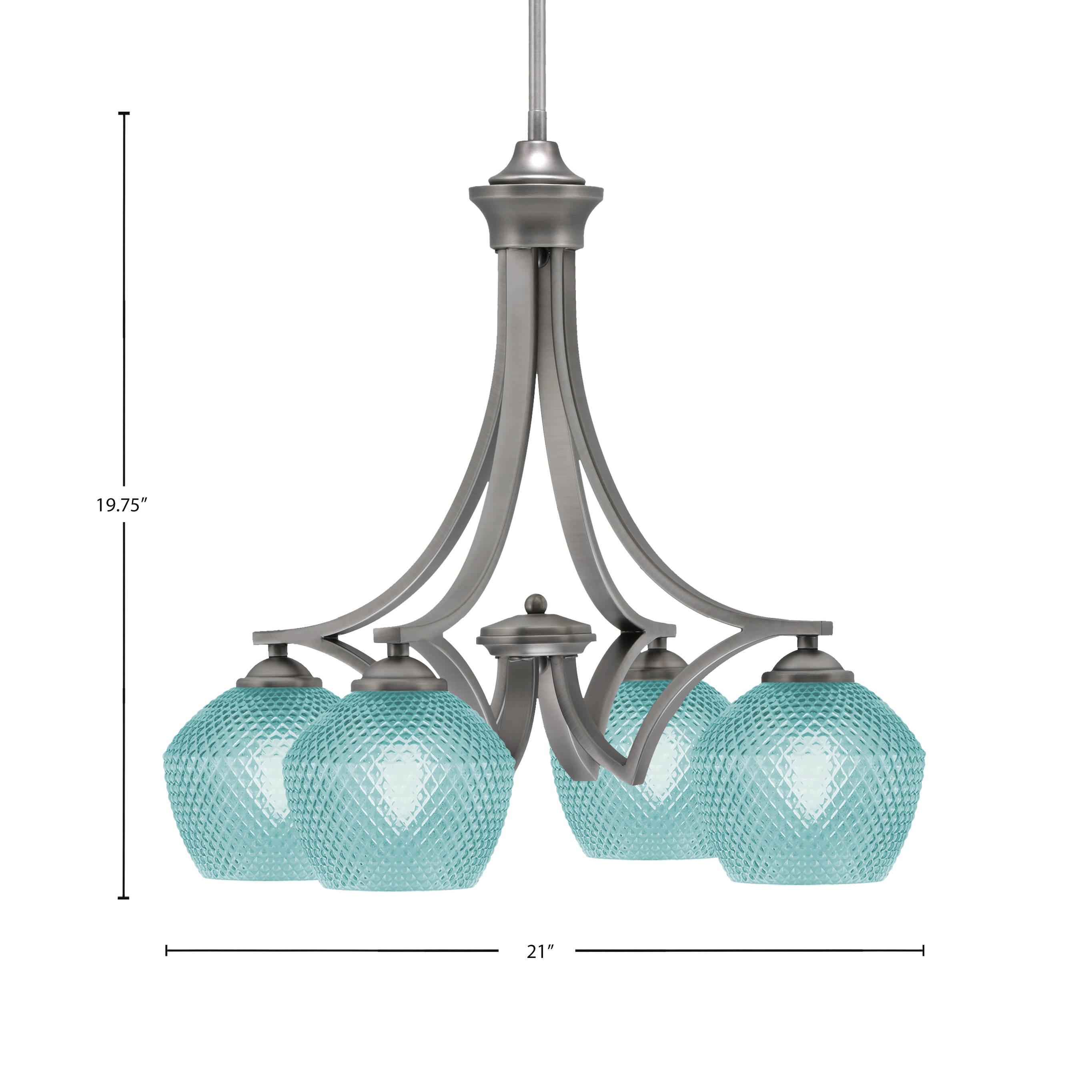 Toltec Lighting 568-GP-4625 Zilo 4 Light Downlight Chandelier, Graphite Finish, 6″ Turquoise Textured Glass