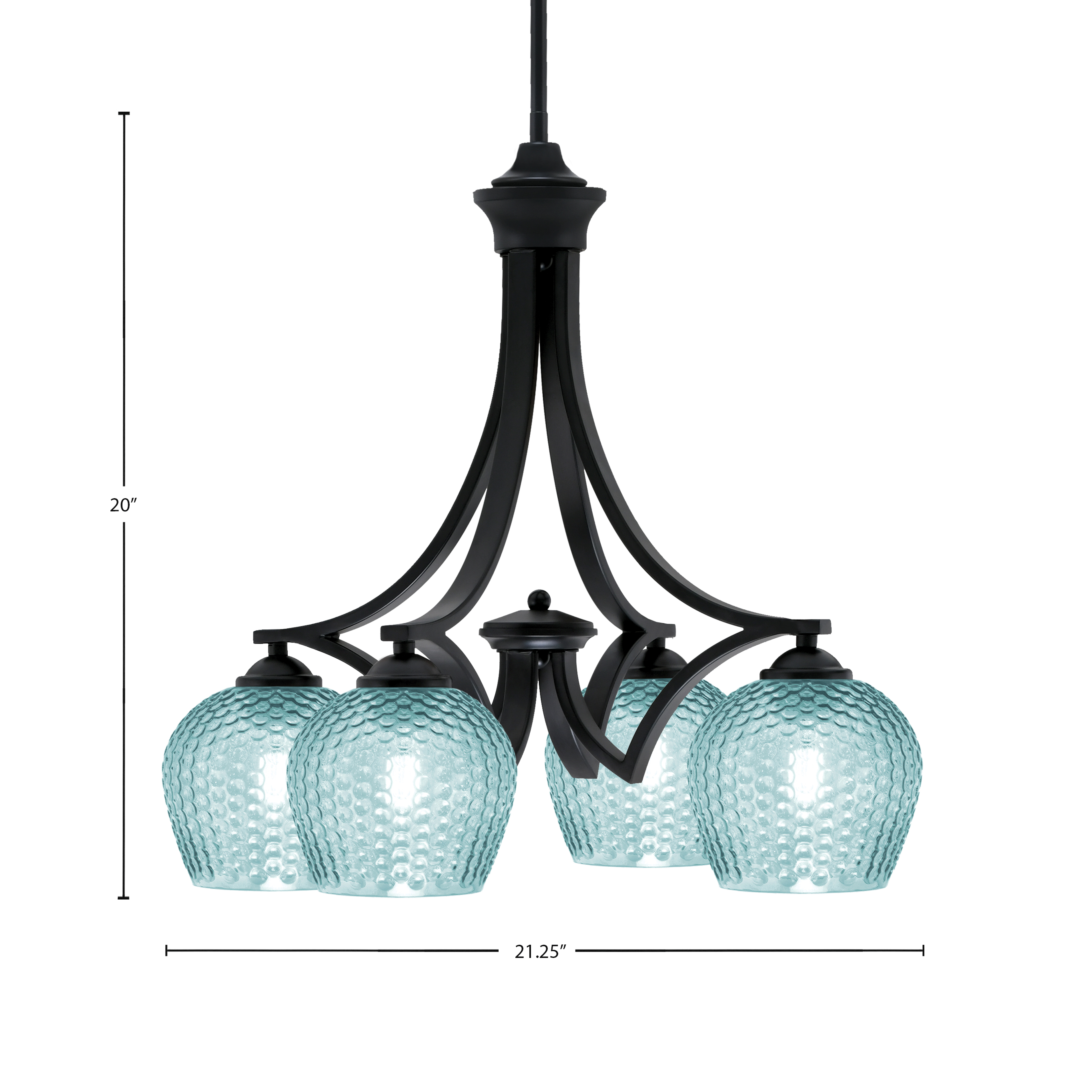Toltec Lighting 568-MB-4605 Zilo 4 Light Downlight Chandelier, Matte Black Finish, 6″ Turquoise Textured Glass