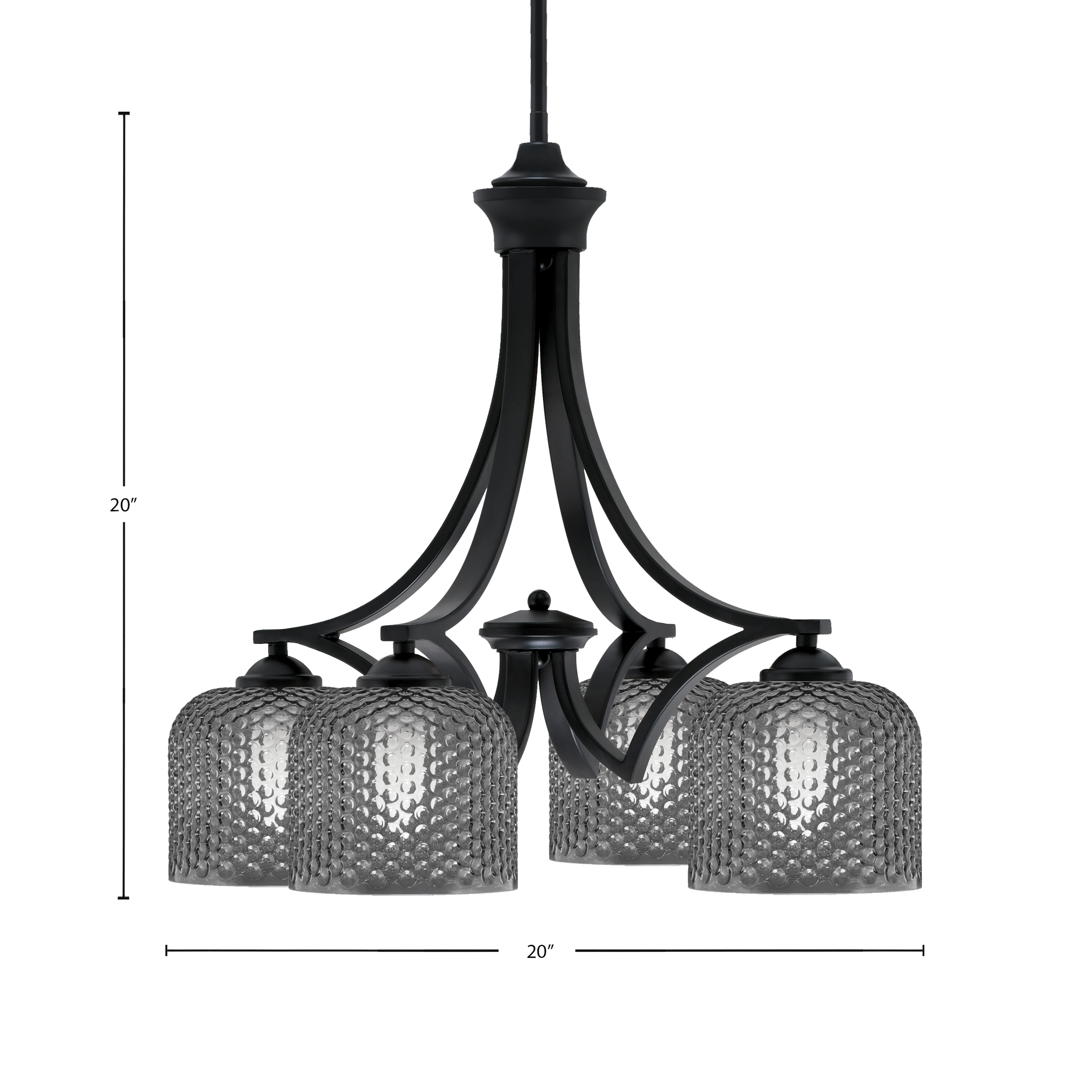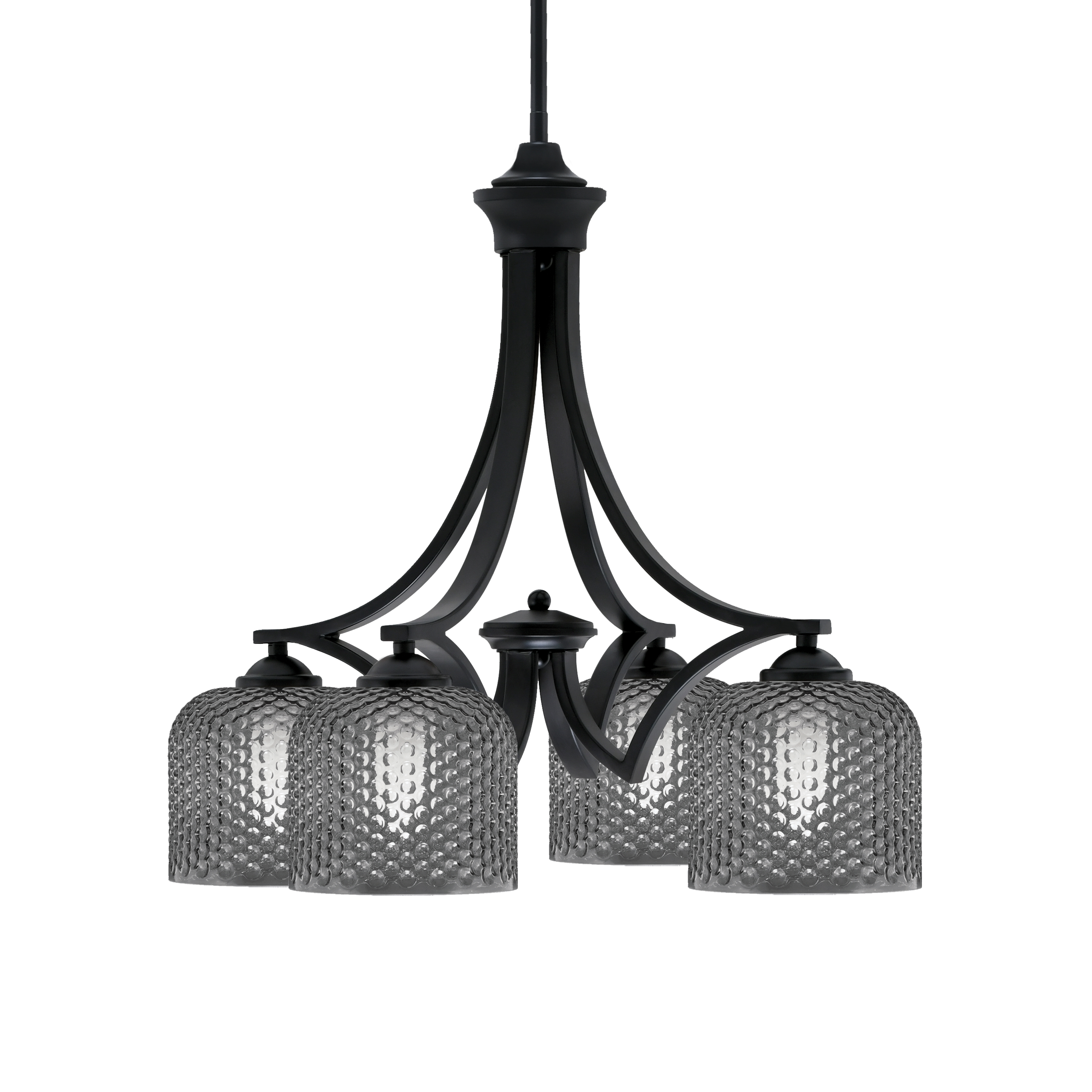 Toltec Lighting 568-MB-4612 Zilo 4 Light Downlight Chandelier, Matte Black Finish, 6″ Smoke Textured Glass