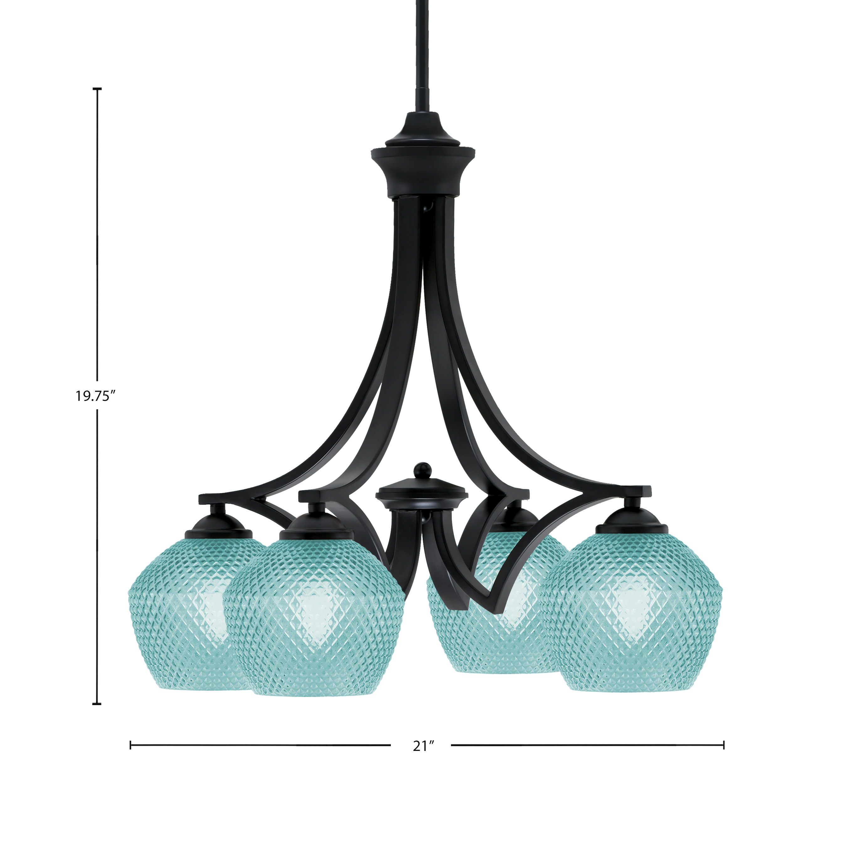 Toltec Lighting 568-MB-4625 Zilo 4 Light Downlight Chandelier, Matte Black Finish, 6″ Turquoise Textured Glass