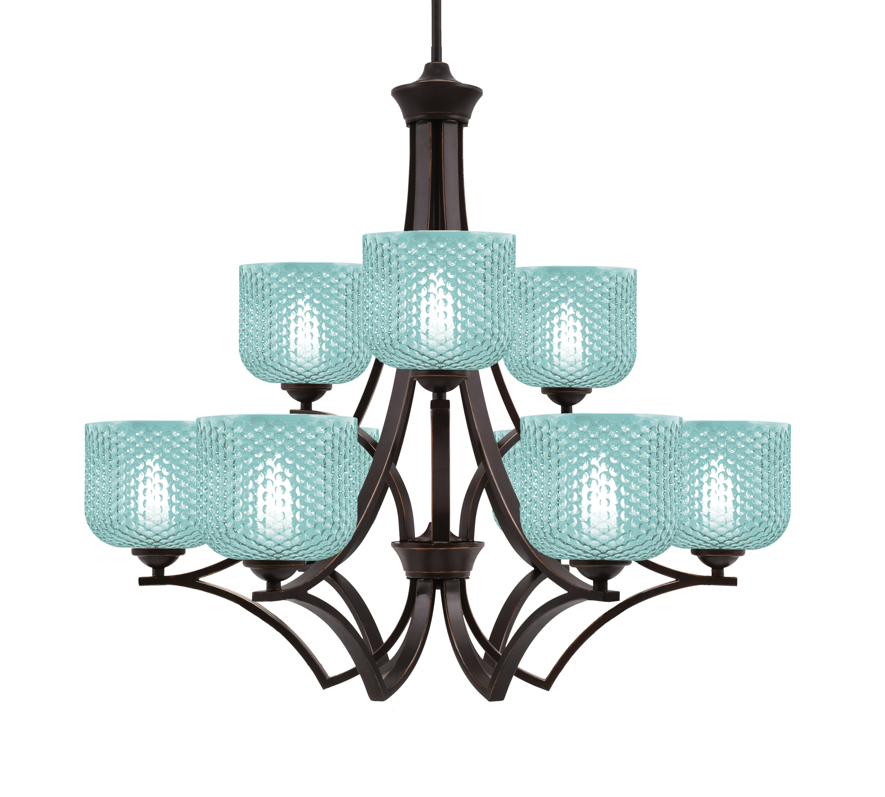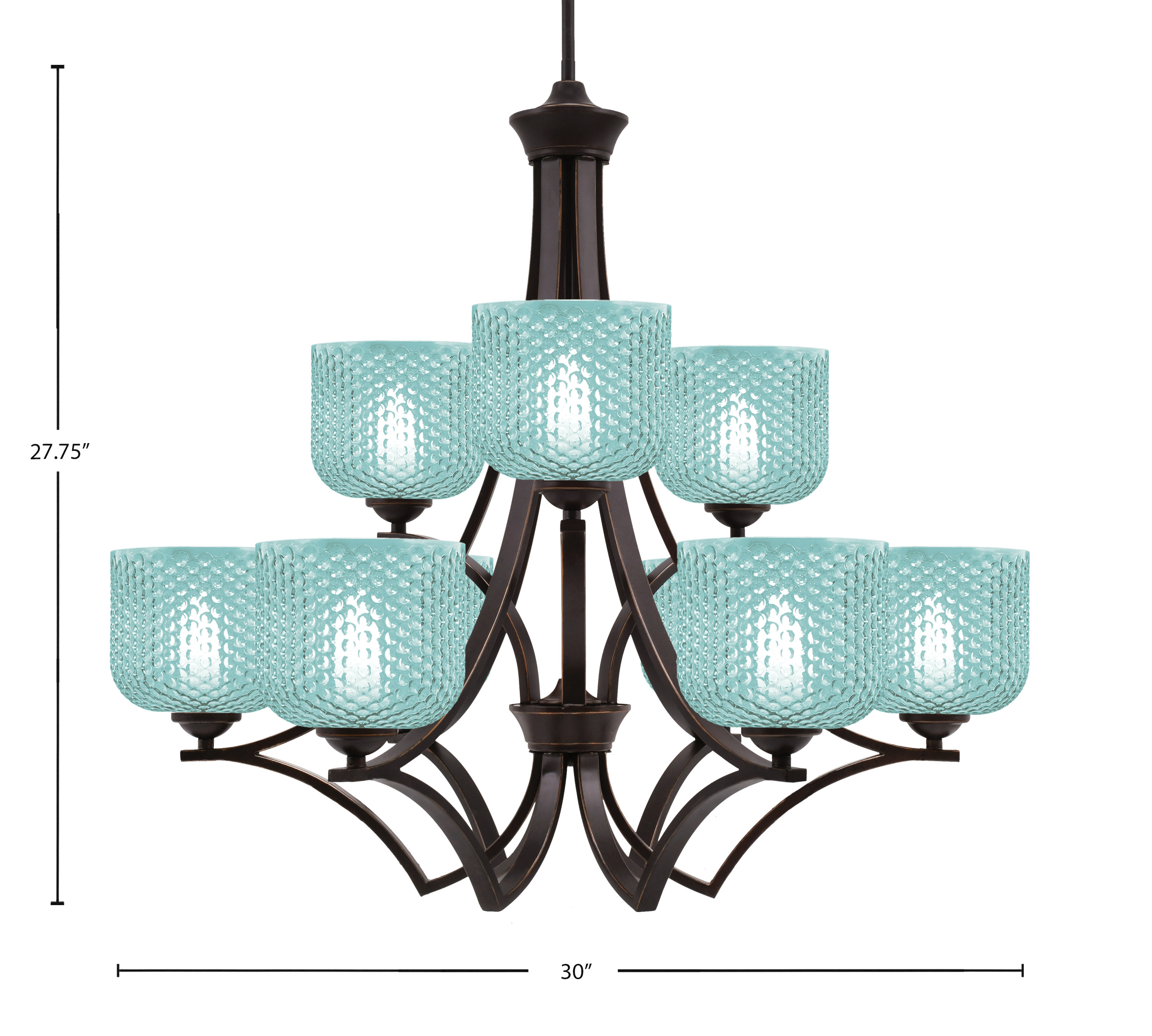 Toltec Lighting 569-DG-4615 Zilo 9 Light Uplight Chandelier, Dark Granite Finish, 6″ Turquoise Textured Glass