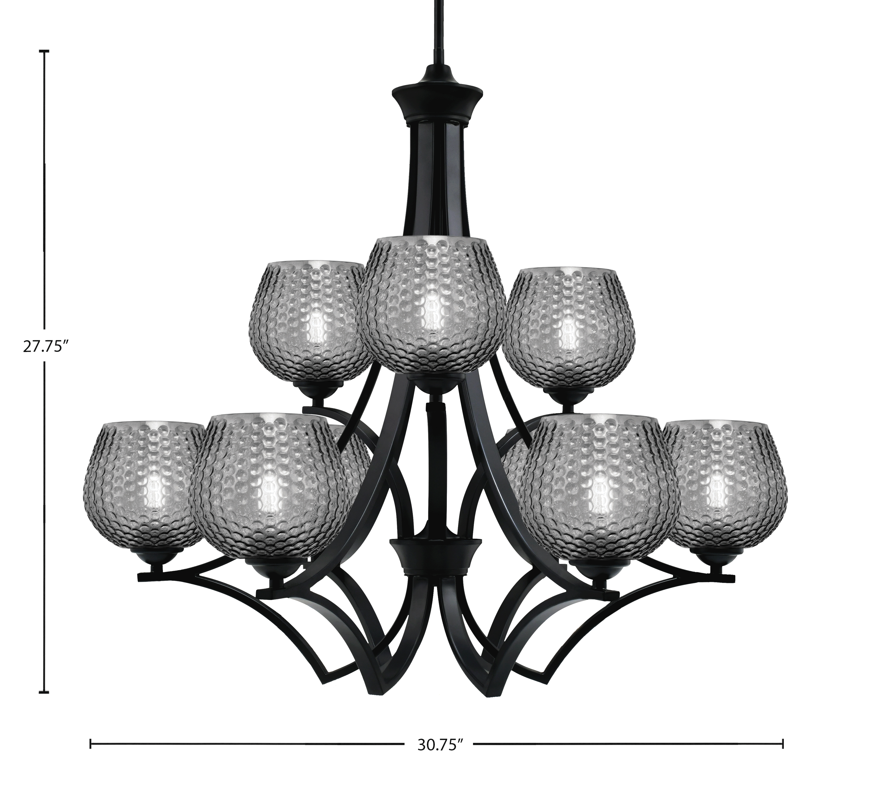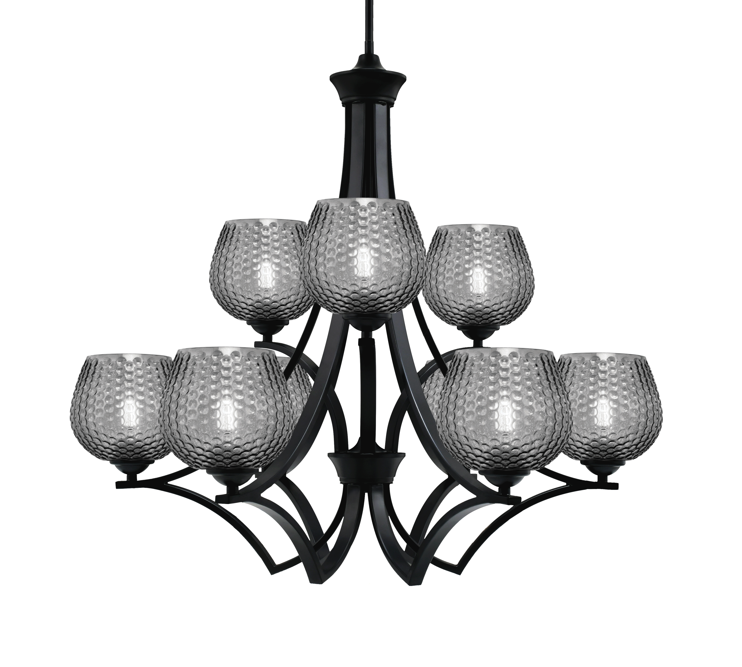 Toltec Lighting 569-MB-4602 Zilo 9 Light Uplight Chandelier, Matte Black Finish, 6″ Smoke Textured Glass
