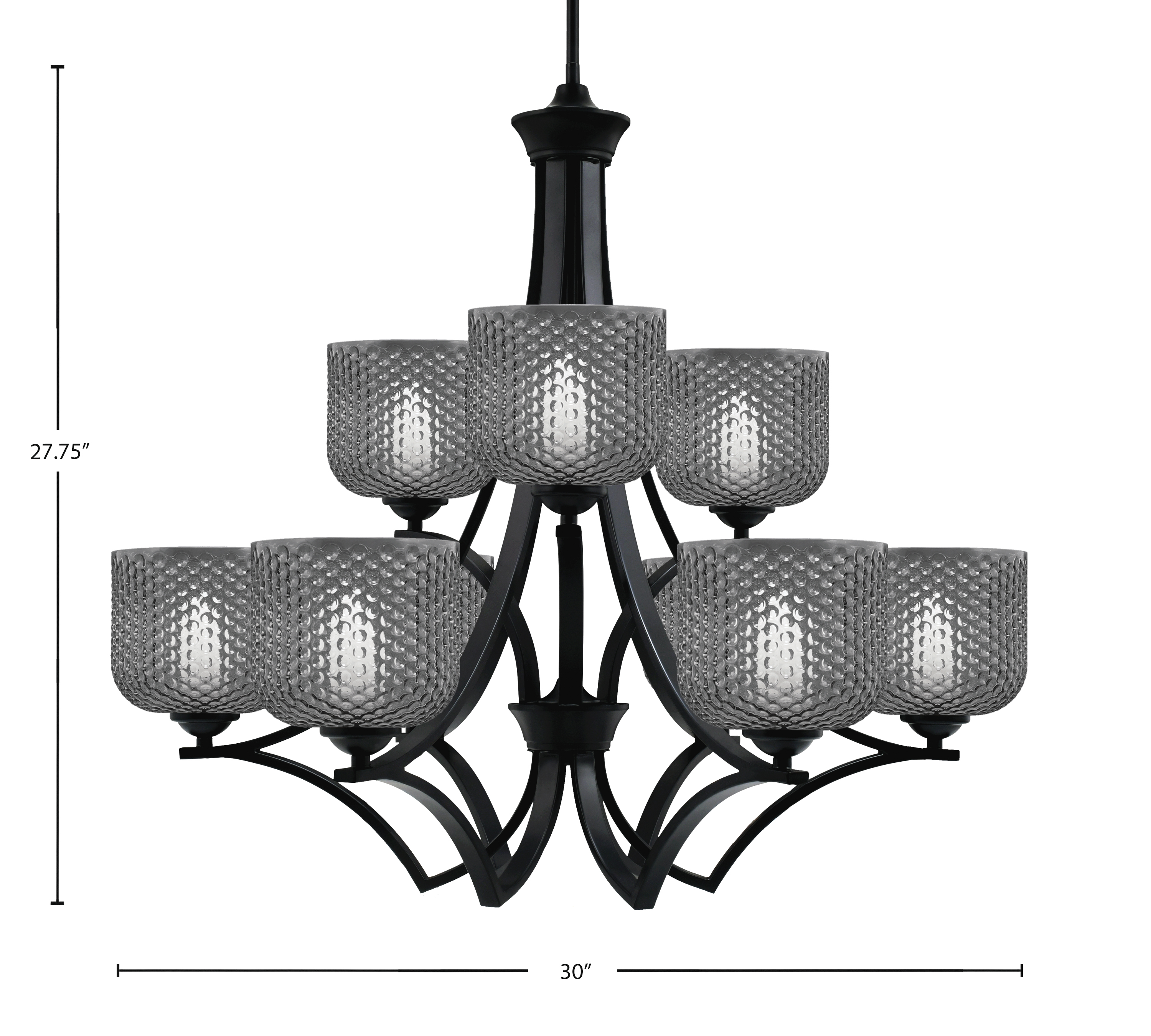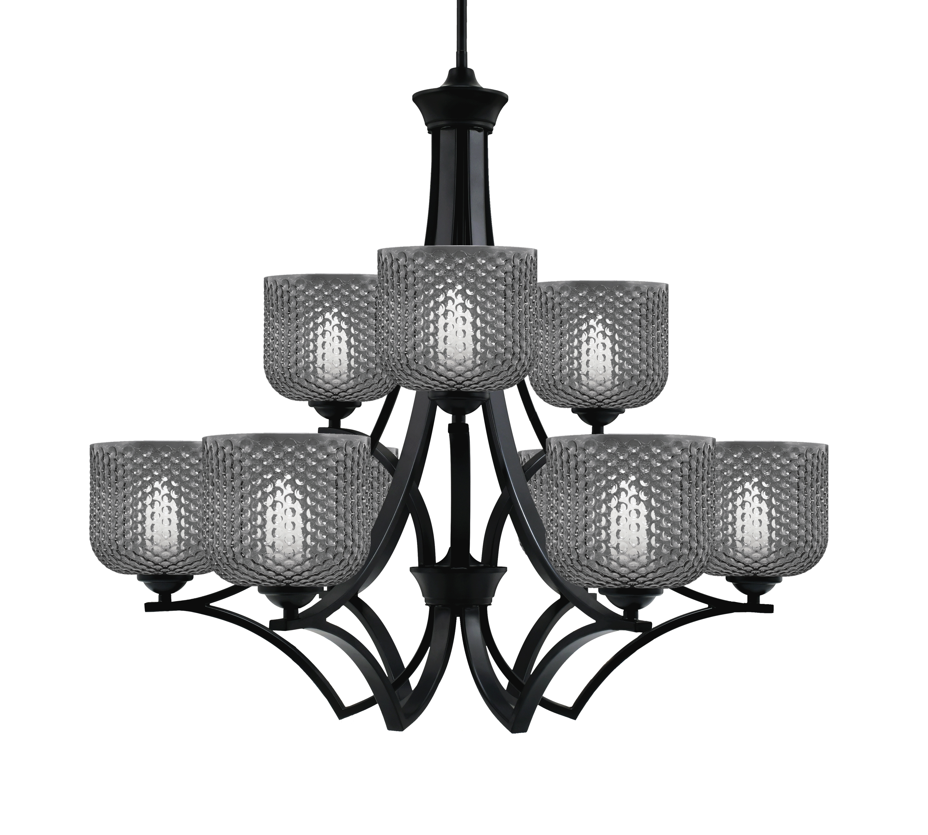 Toltec Lighting 569-MB-4612 Zilo 9 Light Uplight Chandelier, Matte Black Finish, 6″ Smoke Textured Glass