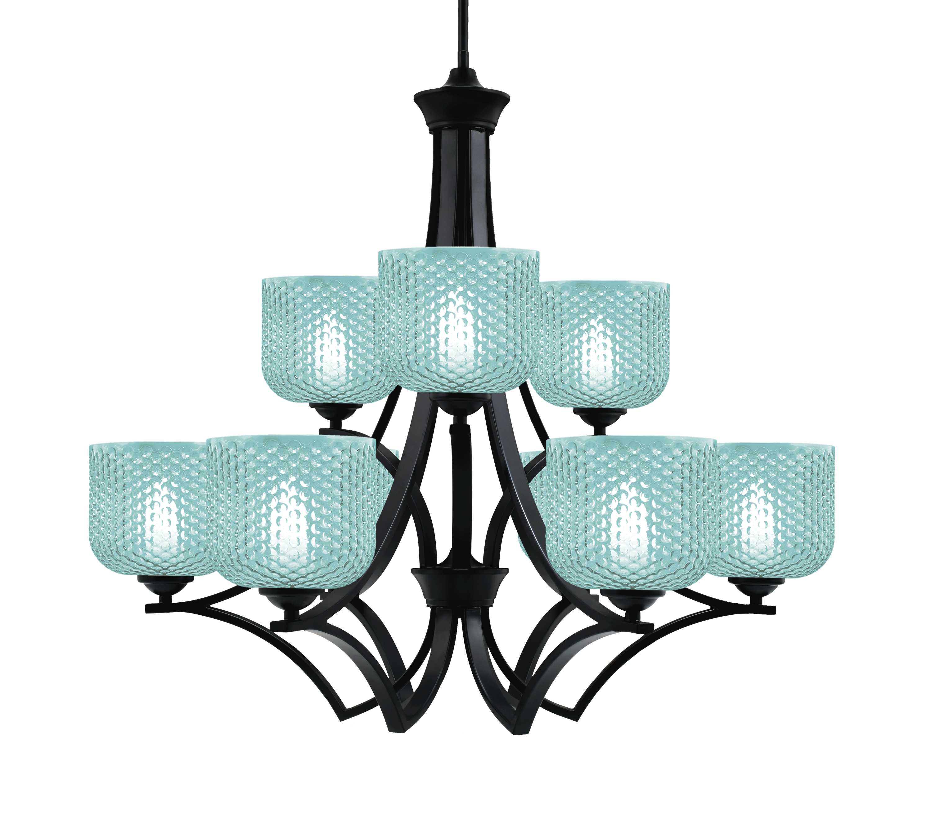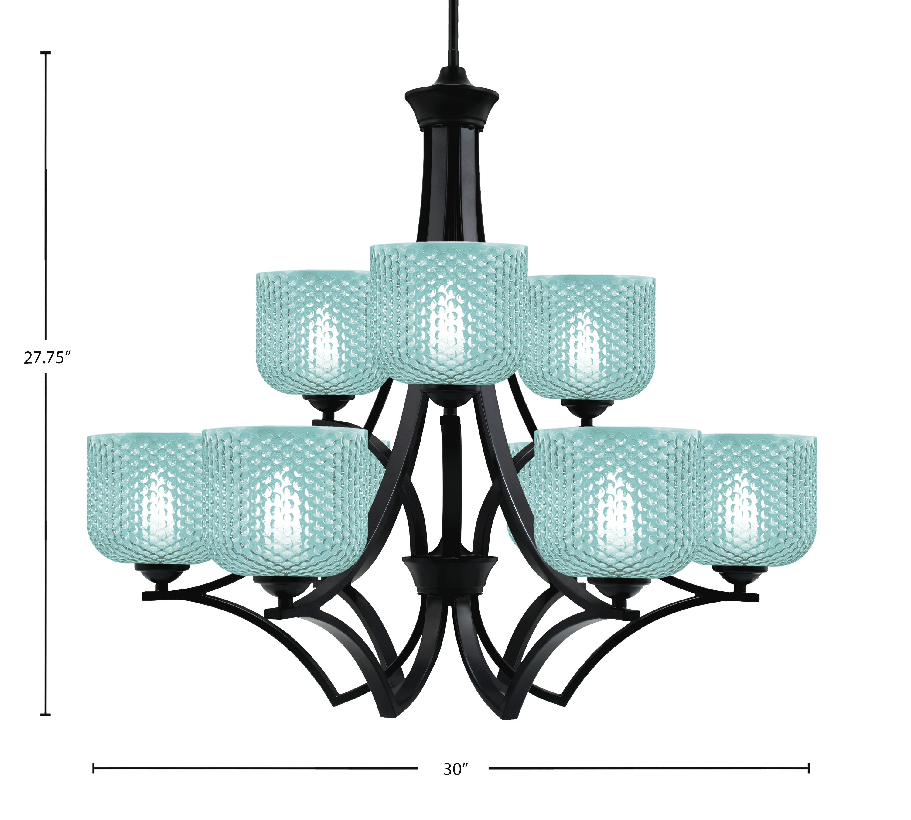 Toltec Lighting 569-MB-4615 Zilo 9 Light Uplight Chandelier, Matte Black Finish, 6″ Turquoise Textured Glass