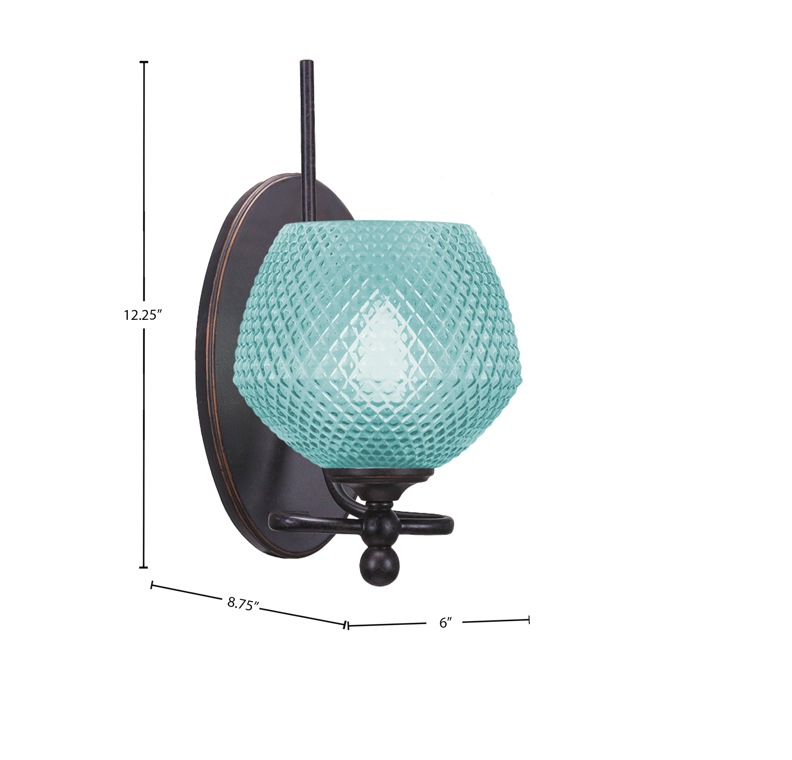 Toltec Lighting 591-DG-4625 Capri Wall Sconce, Dark Granite Finish, 6″ Turquoise Textured Glass