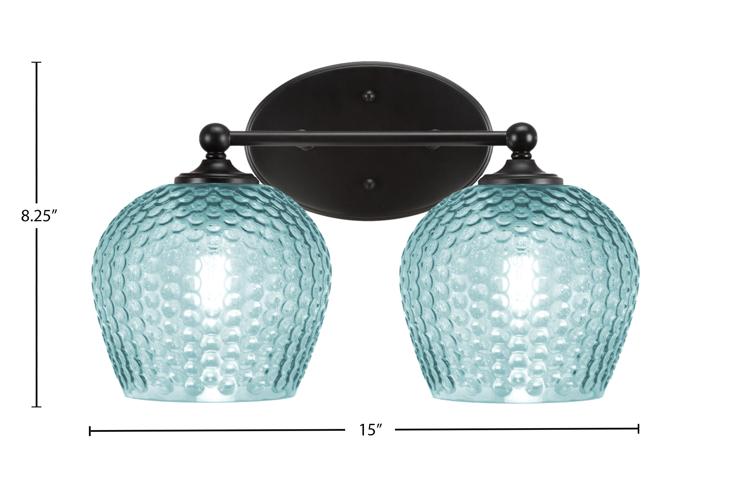 Toltec Lighting 5912-MB-4605 Capri 2 Light Bath Bar, Matte Black Finish, 6″ Turquoise Textured Glass