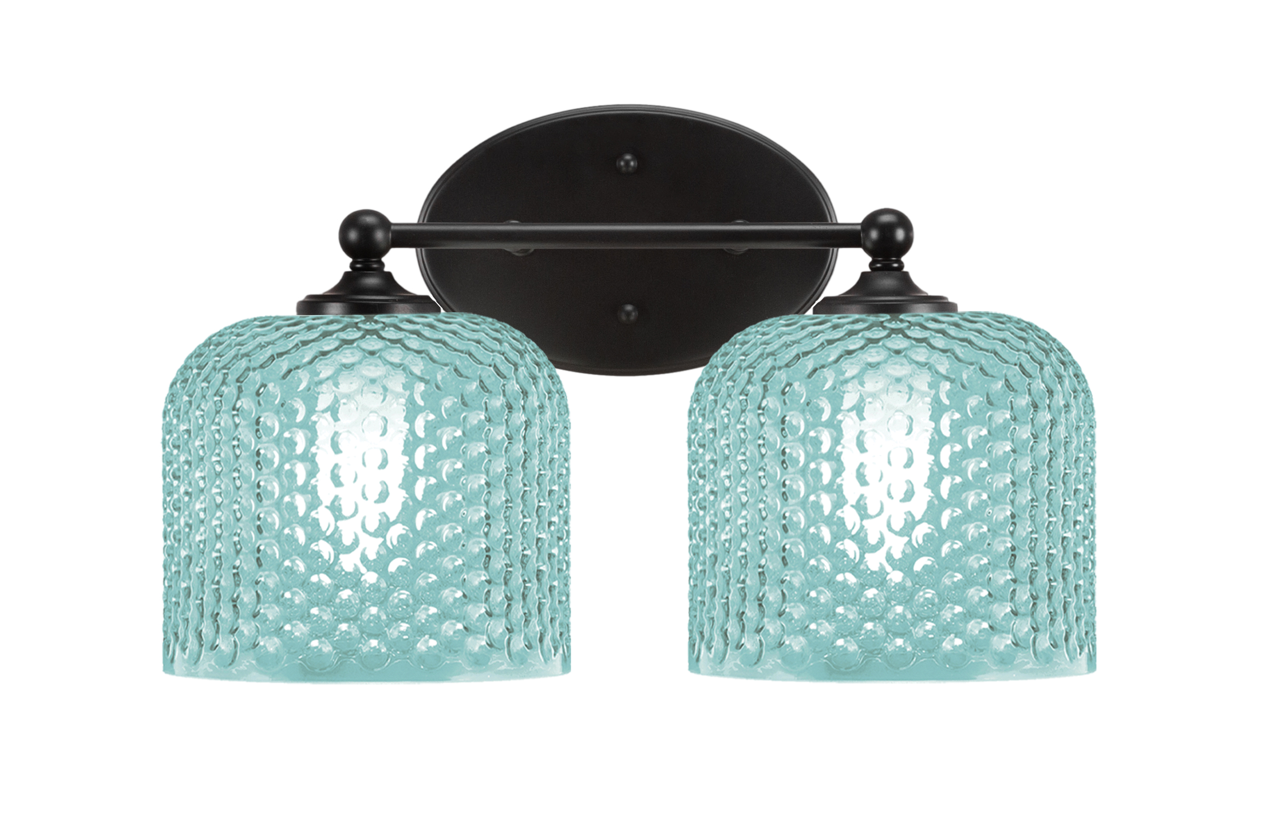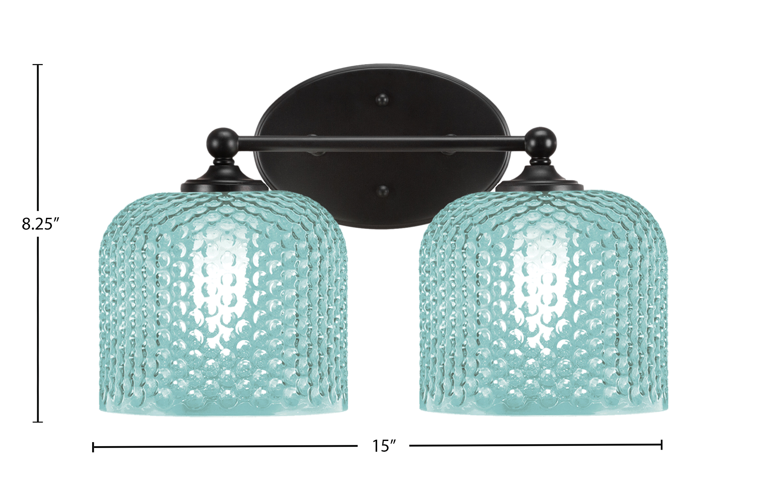 Toltec Lighting 5912-MB-4615 Capri 2 Light Bath Bar, Matte Black Finish, 6″ Turquoise Textured Glass