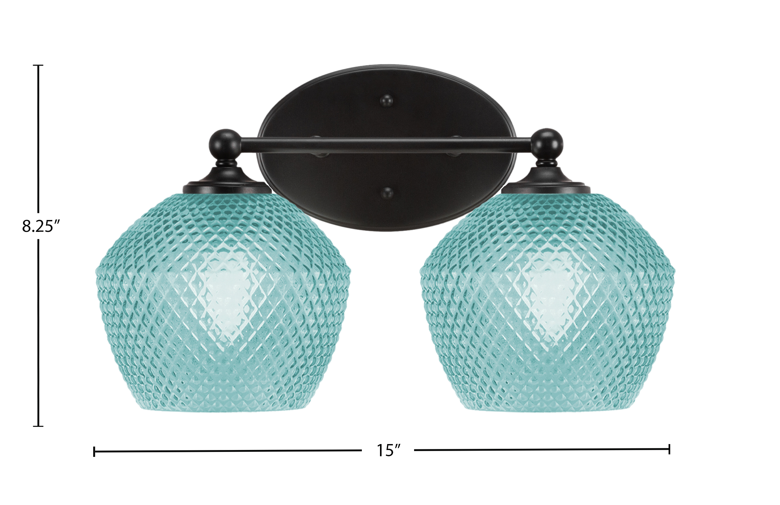 Toltec Lighting 5912-MB-4625 Capri 2 Light Bath Bar, Matte Black Finish, 6″ Turquoise Textured Glass