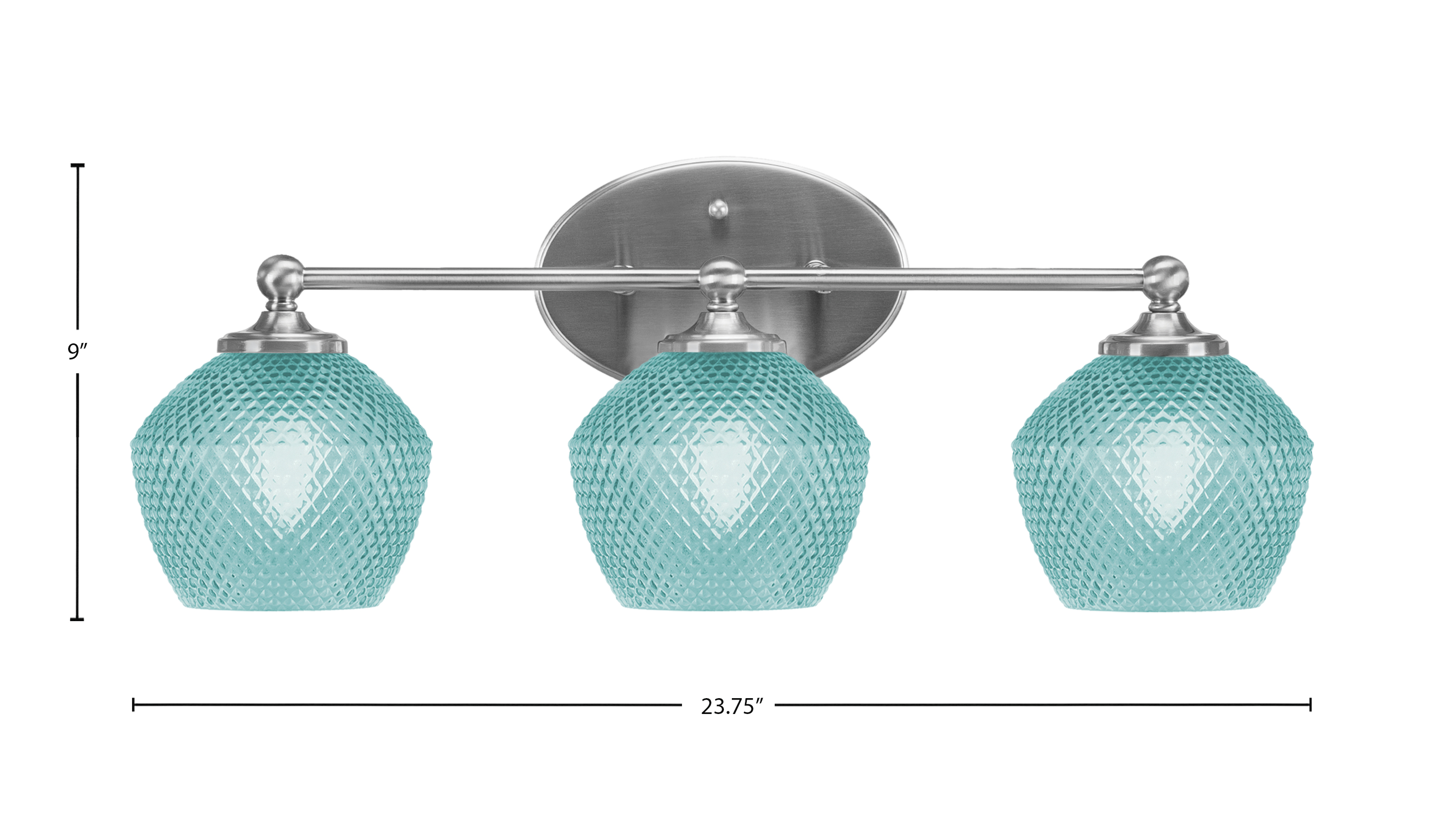 Toltec Lighting 5913-BN-4625 Capri 3 Light Bath Bar, Brushed Nickel Finish, 6″ Turquoise Textured Glass