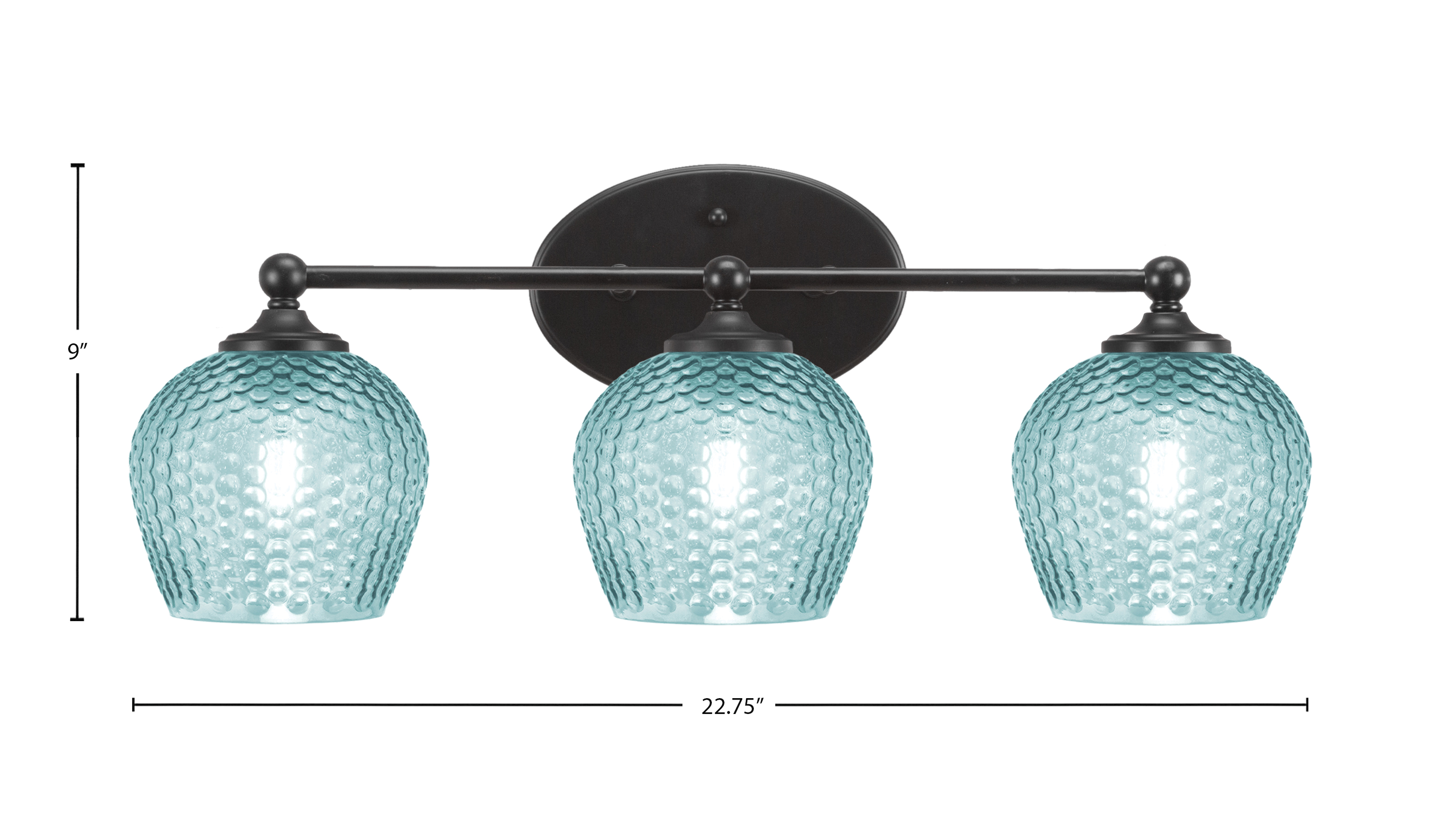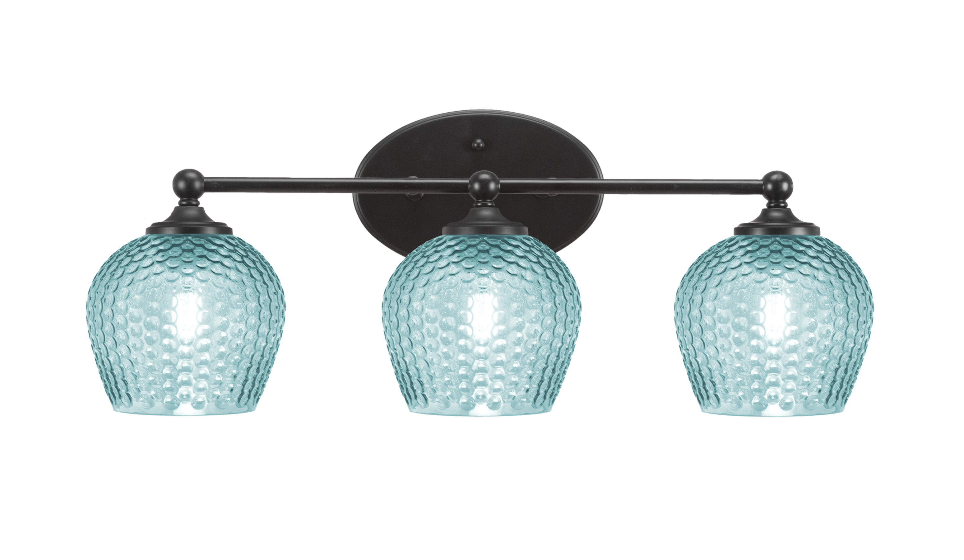 Toltec Lighting 5913-MB-4605 Capri 3 Light Bath Bar, Matte Black Finish, 6″ Turquoise Textured Glass