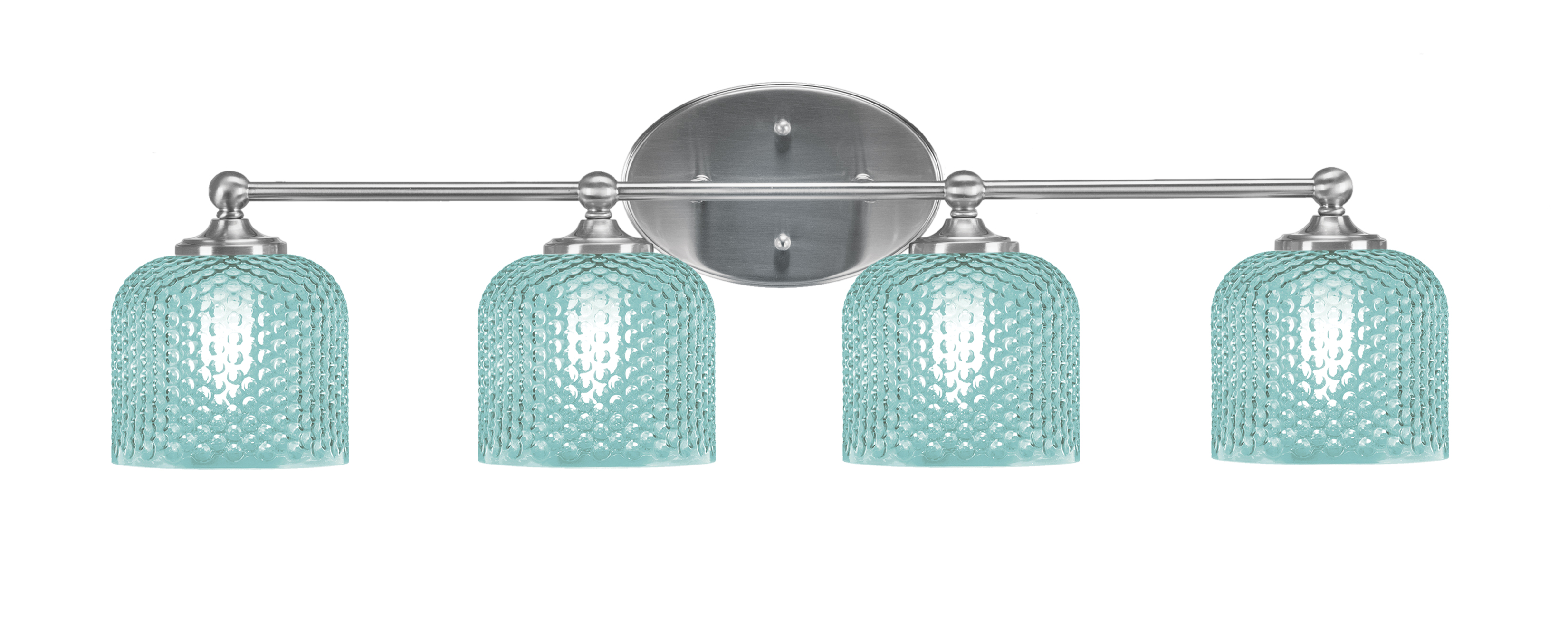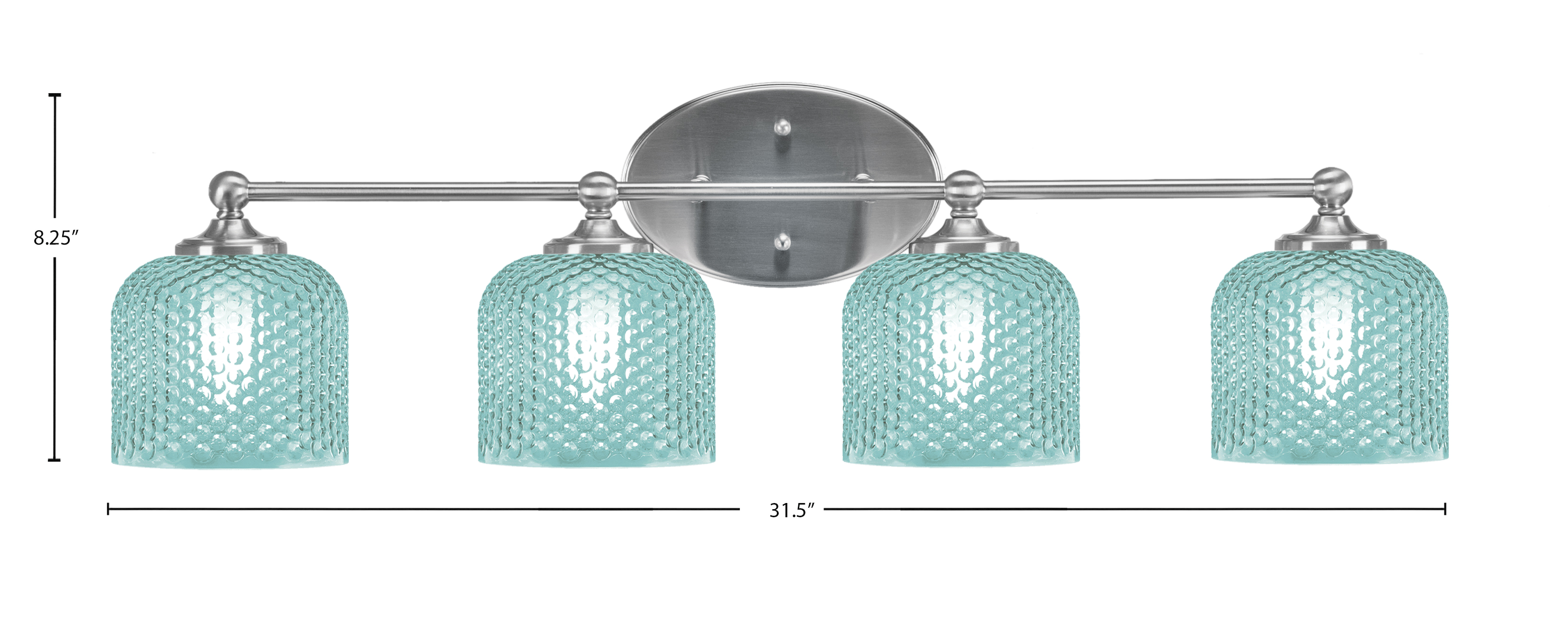 Toltec Lighting 5914-BN-4615 Capri 4 Light Bath Bar, Brushed Nickel Finish, 6″ Turquoise Textured Glass