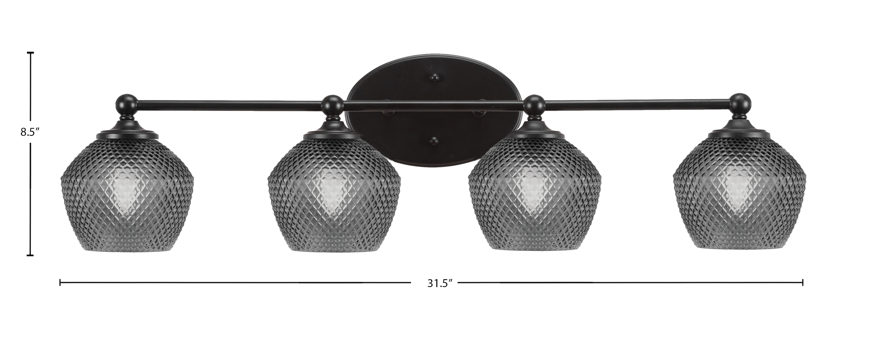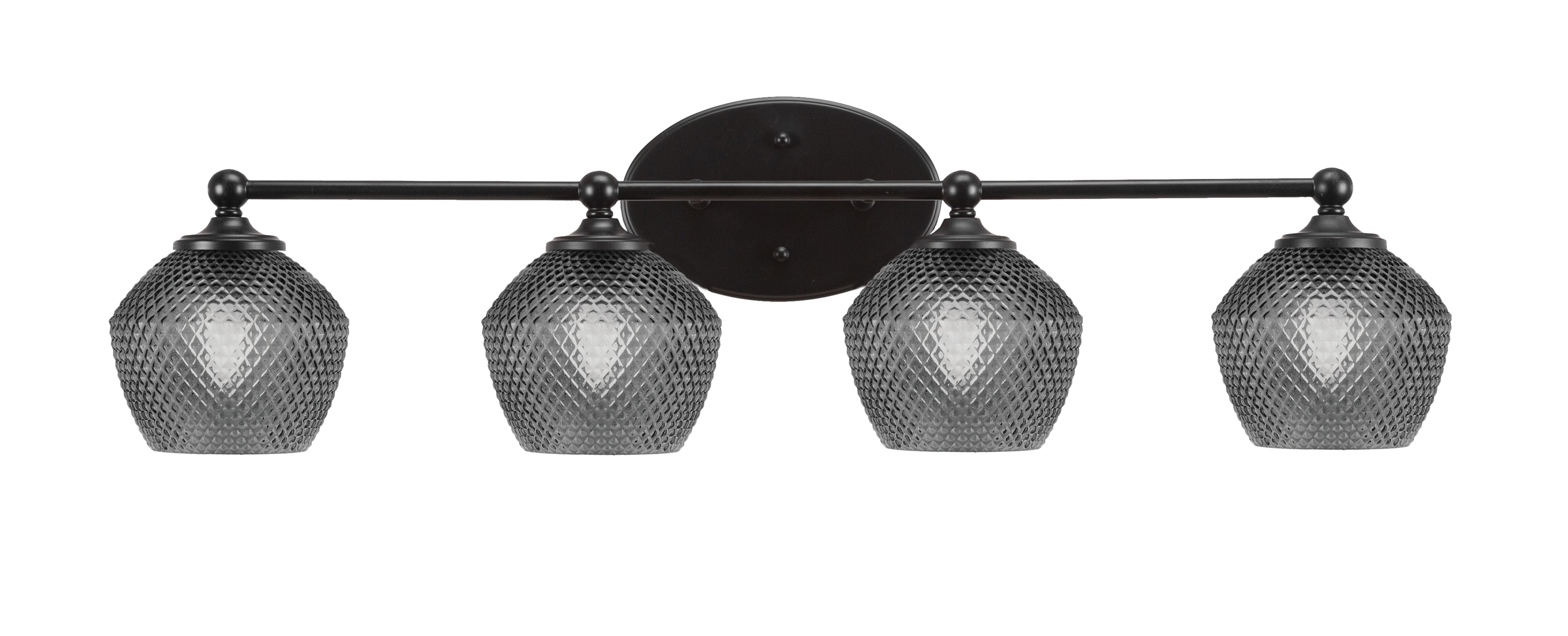 Toltec Lighting 5914-MB-4622 Capri 4 Light Bath Bar, Matte Black Finish, 6″ Smoke Textured Glass