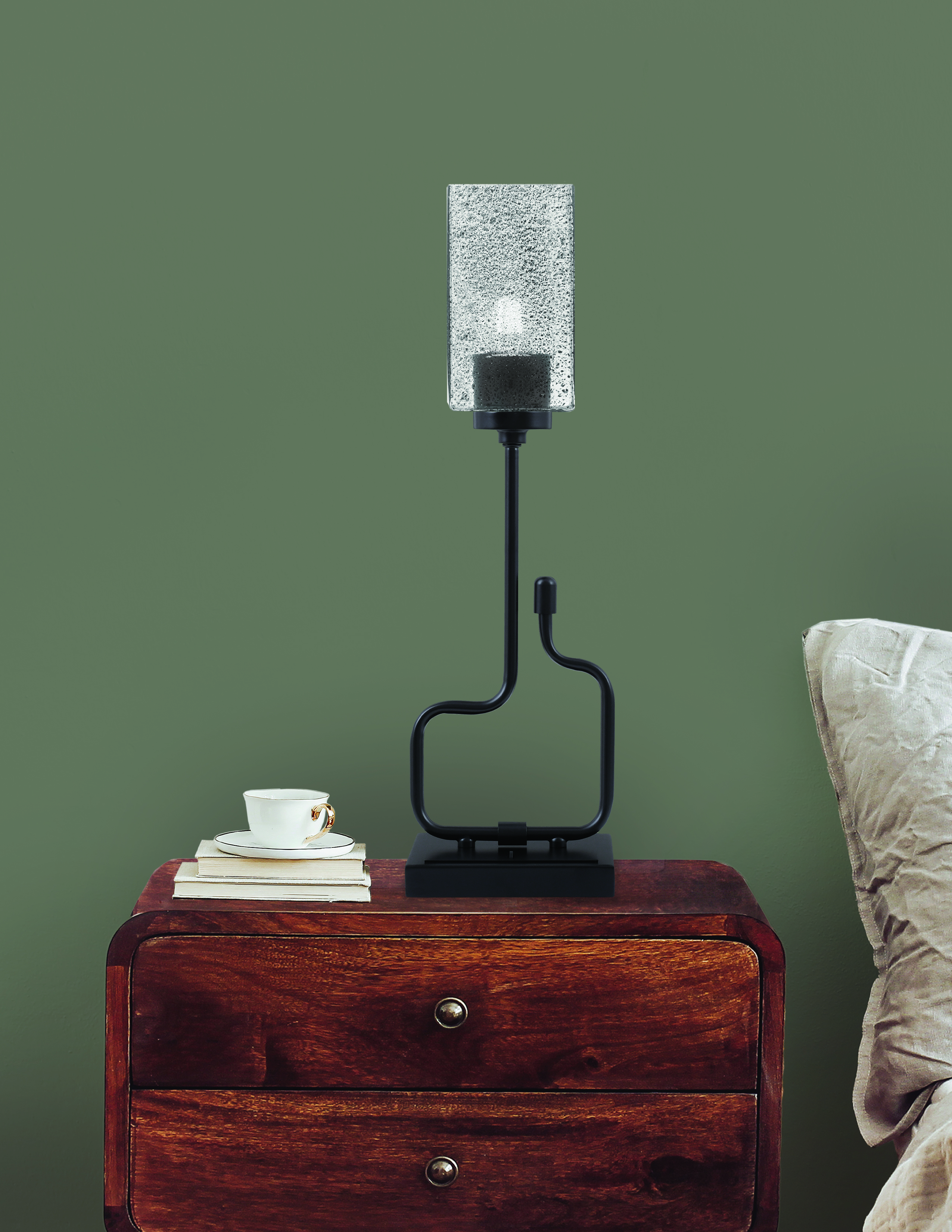 Infuse your space with contemporary charm using the Sandia Accent Lamp. Its bold matte black finish offers a sleek, modern appeal, while the 3.5″ square smoke bubble glass shade adds texture and sophistication. The smoky hue and intricate bubble design diffuse light beautifully, creating a cozy and ambient glow.
