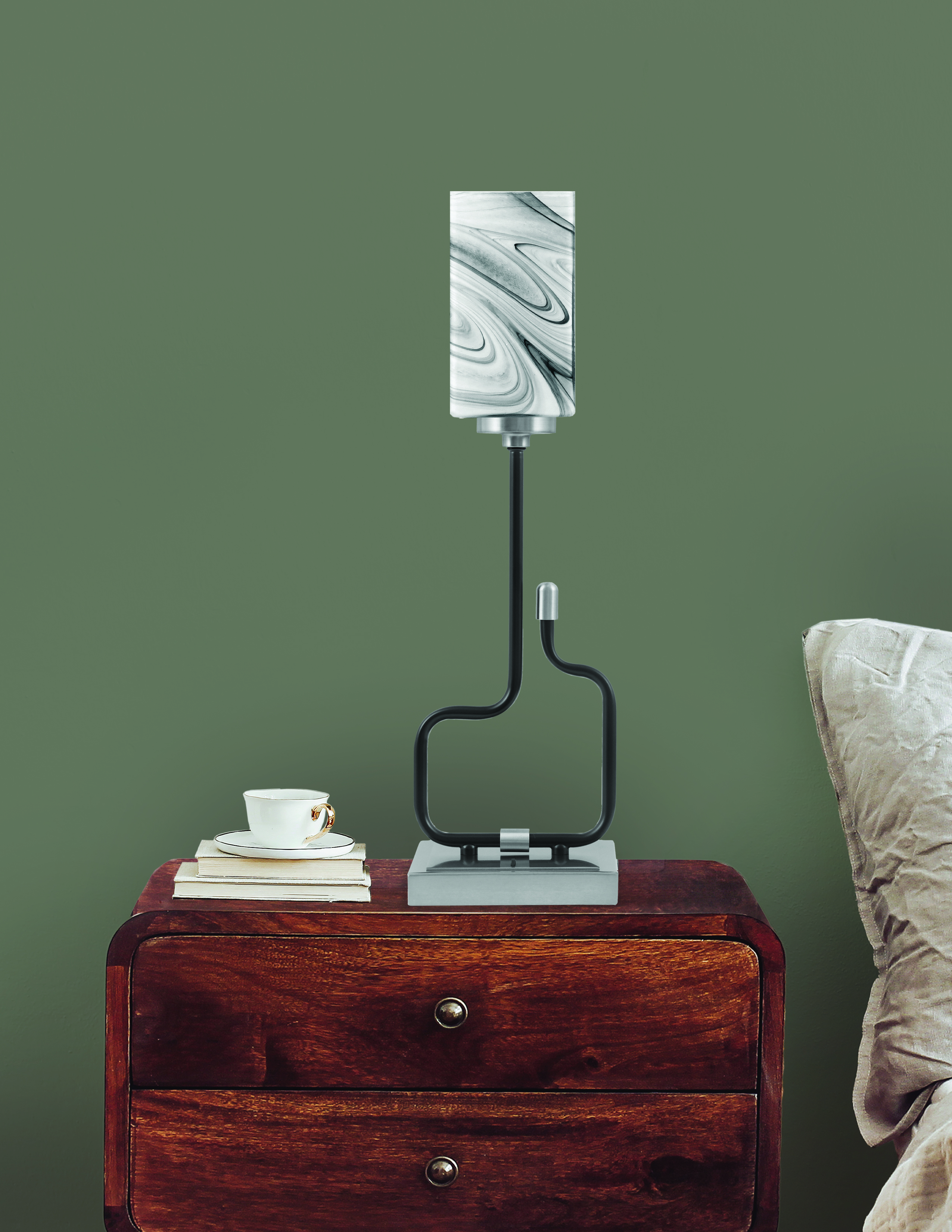 Enhance your space with the sophisticated Sandia Accent Lamp, featuring a matte black and graphite finish paired with a 3.5″ square onyx swirl glass shade. The onyx swirl pattern in the glass creates a striking visual effect, blending tones of deep, rich hues. Ideal for accent lighting, this lamp is perfect for bedside tables, desks, or living room consoles.