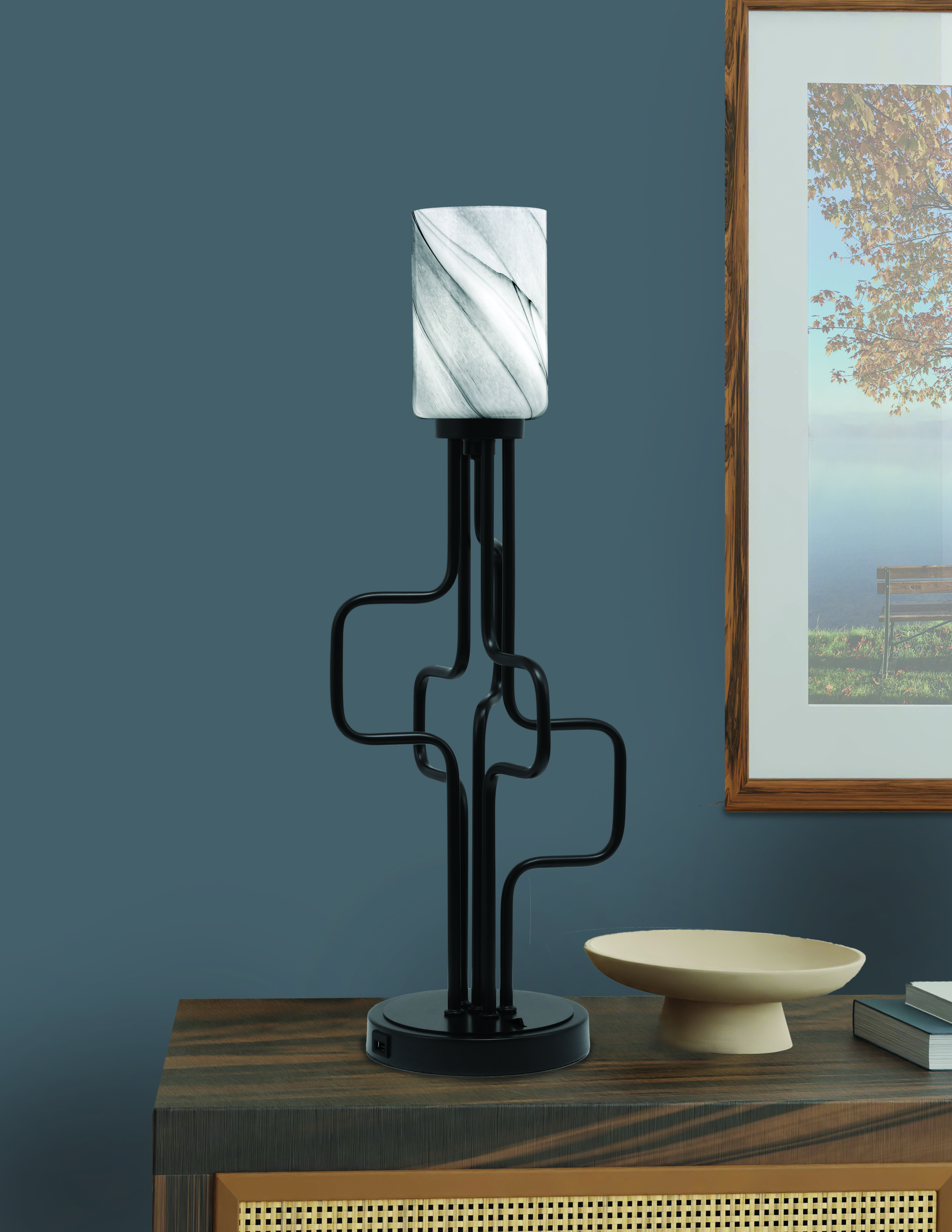 Toltec Lighting 62-MB-3009 Sandia Accent Lamp, With USB Ports, Matte Black Finish, 4″ Onyx Swirl Glass
