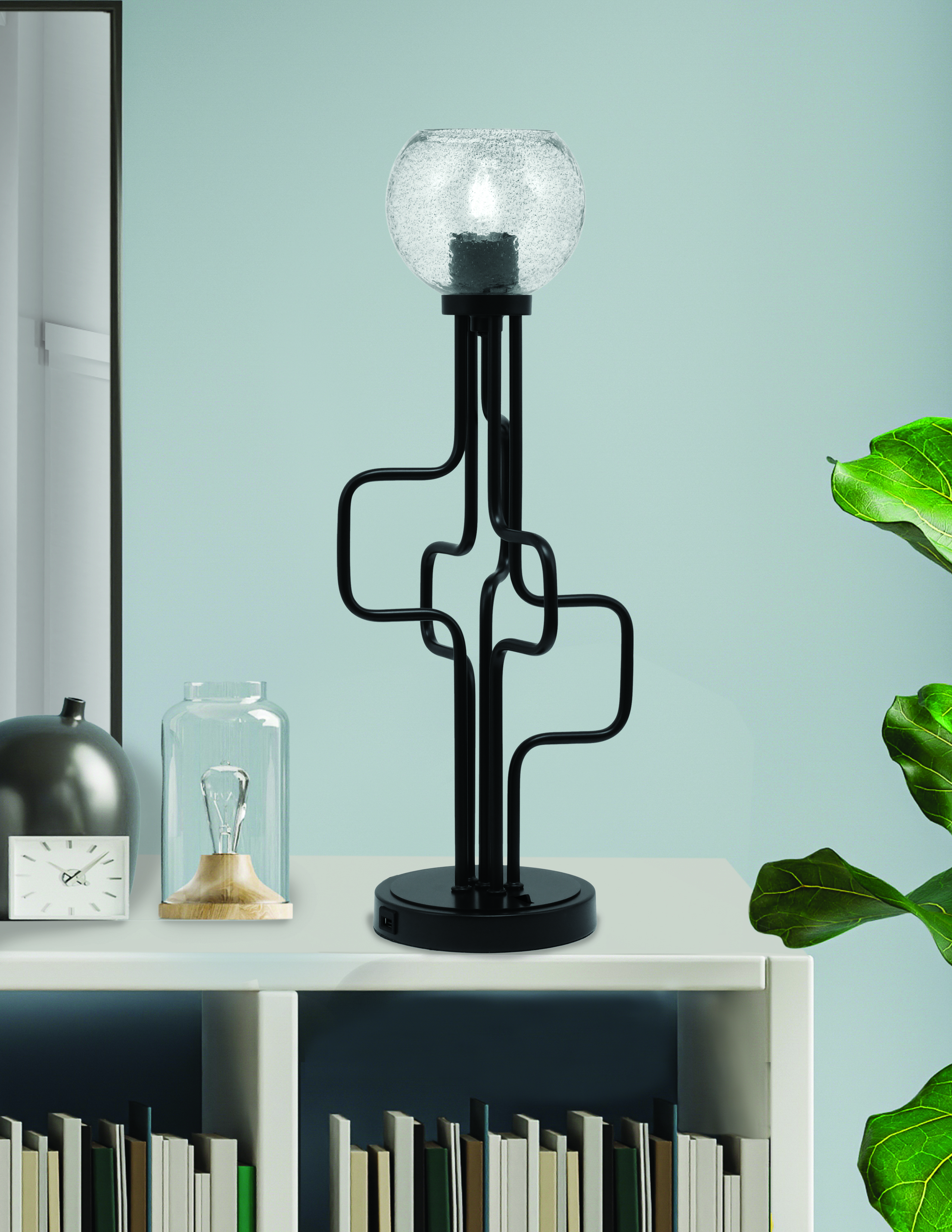 Toltec Lighting 62-MB-4102 Sandia Accent Lamp, With USB Ports, Matte Black Finish, 5.75″ Smoke Bubble Glass