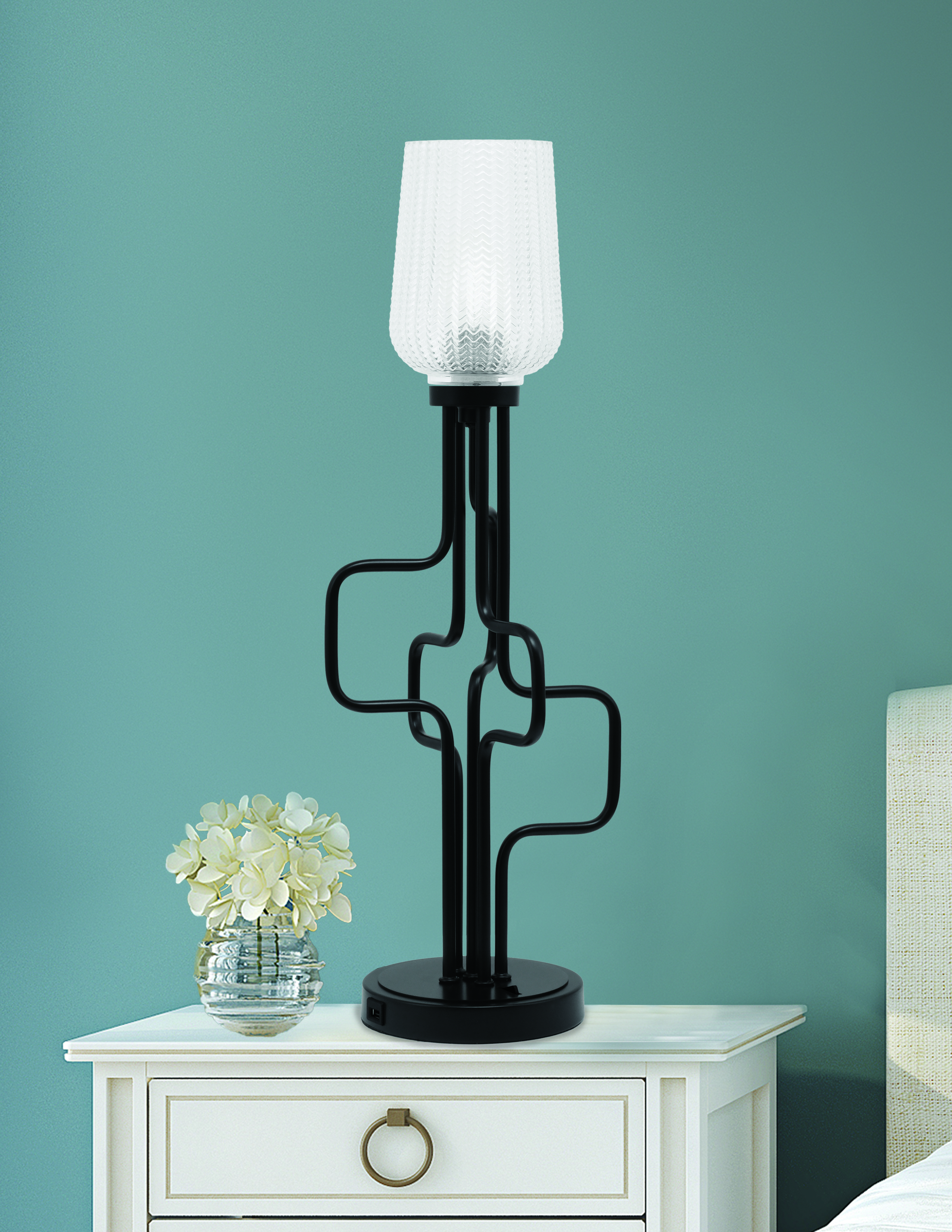 Toltec Lighting 62-MB-4250 Sandia Accent Lamp, With USB Ports, Matte Black Finish, 5″ Clear Textured Glass