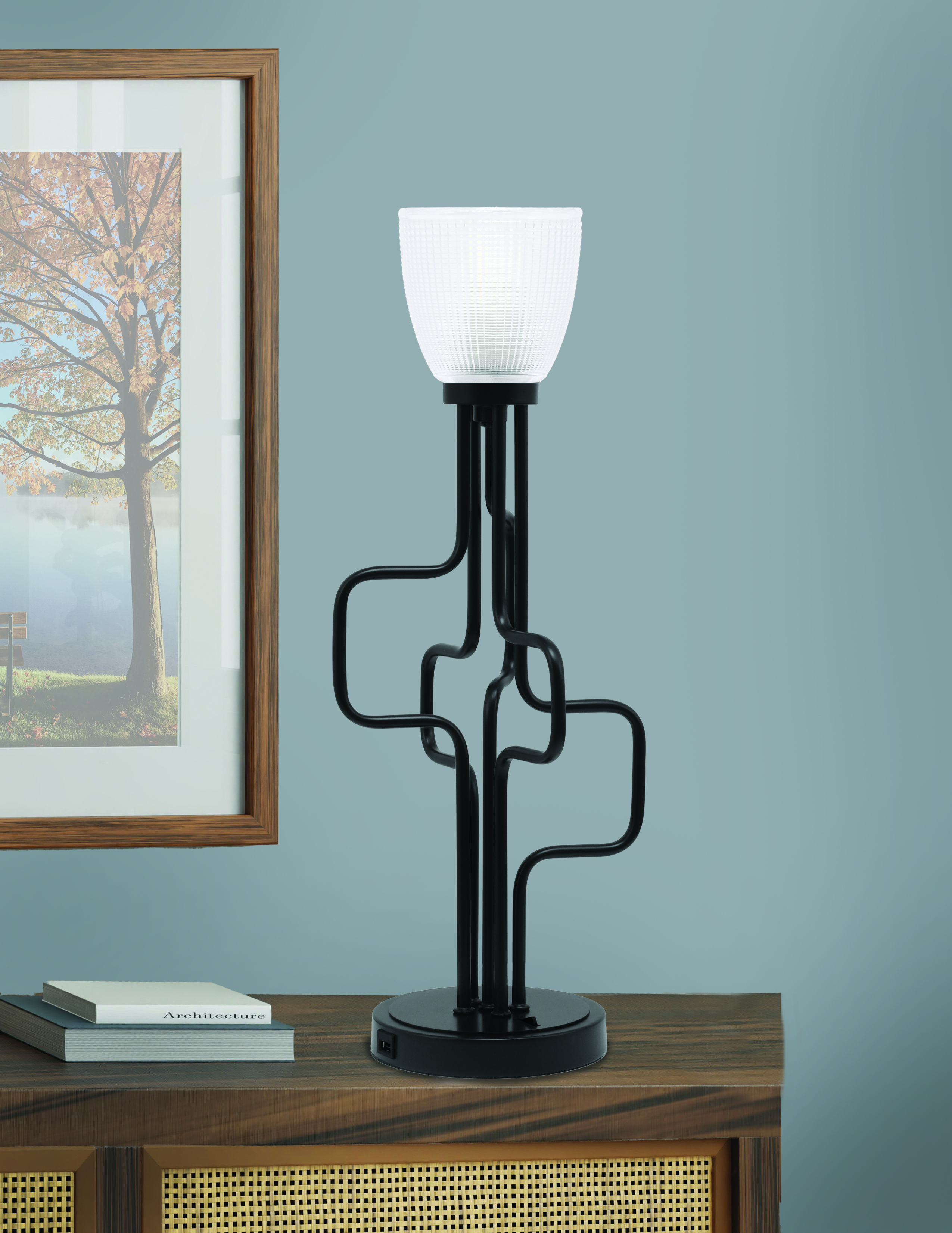 Toltec Lighting 62-MB-500 Sandia Accent Lamp, With USB Ports, Matte Black Finish, 5″ Clear Ribbed Glass