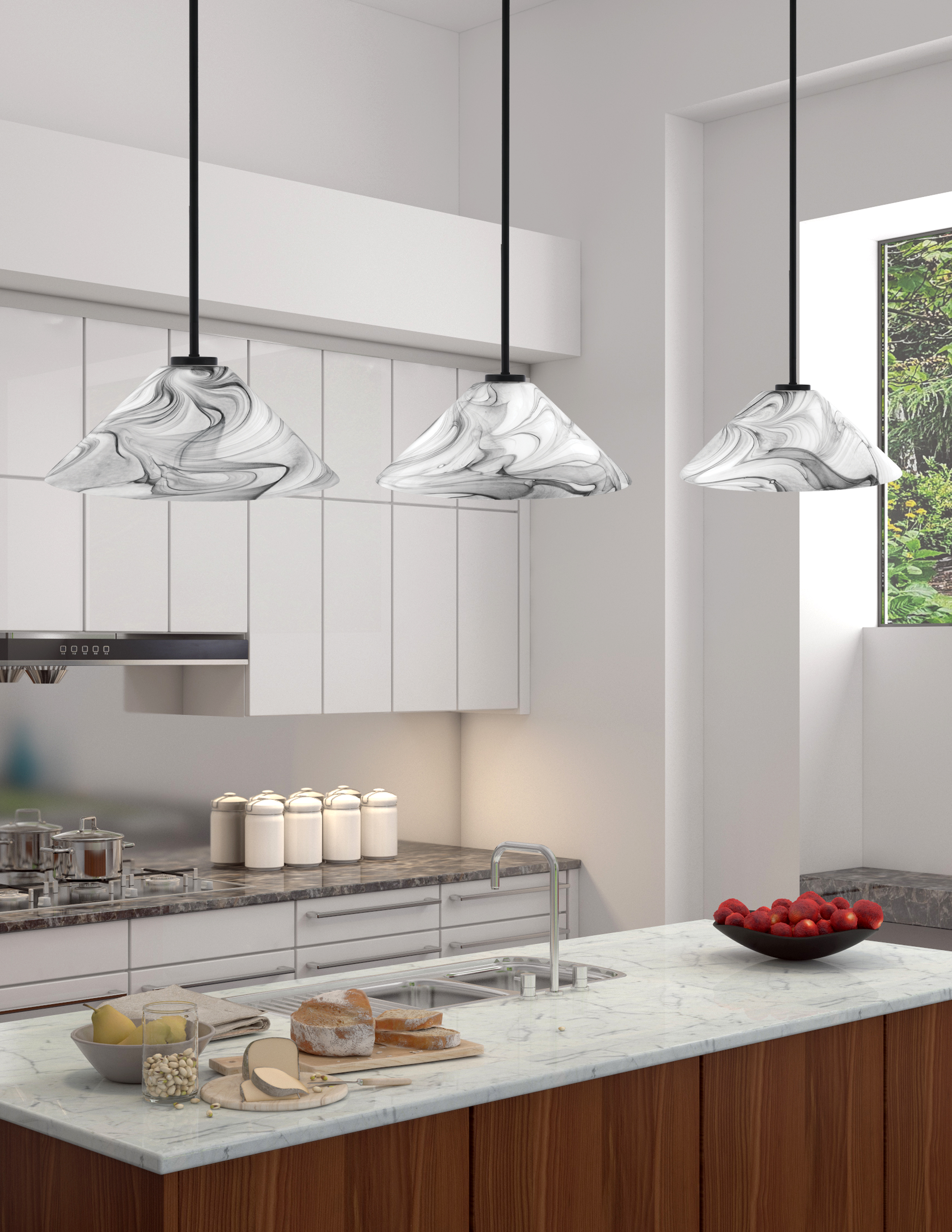 Introducing The Sandia 1 Light Stem Pendant, A Stunning Addition To Any Space. Featuring A Sleek Matte Black Finish, This Pendant Light Pairs Perfectly With Its Unique 16″ Onyx Swirl Glass Shade. Illuminate Your Home With This Elegant, Modern Design That Combines Style And Functionality.