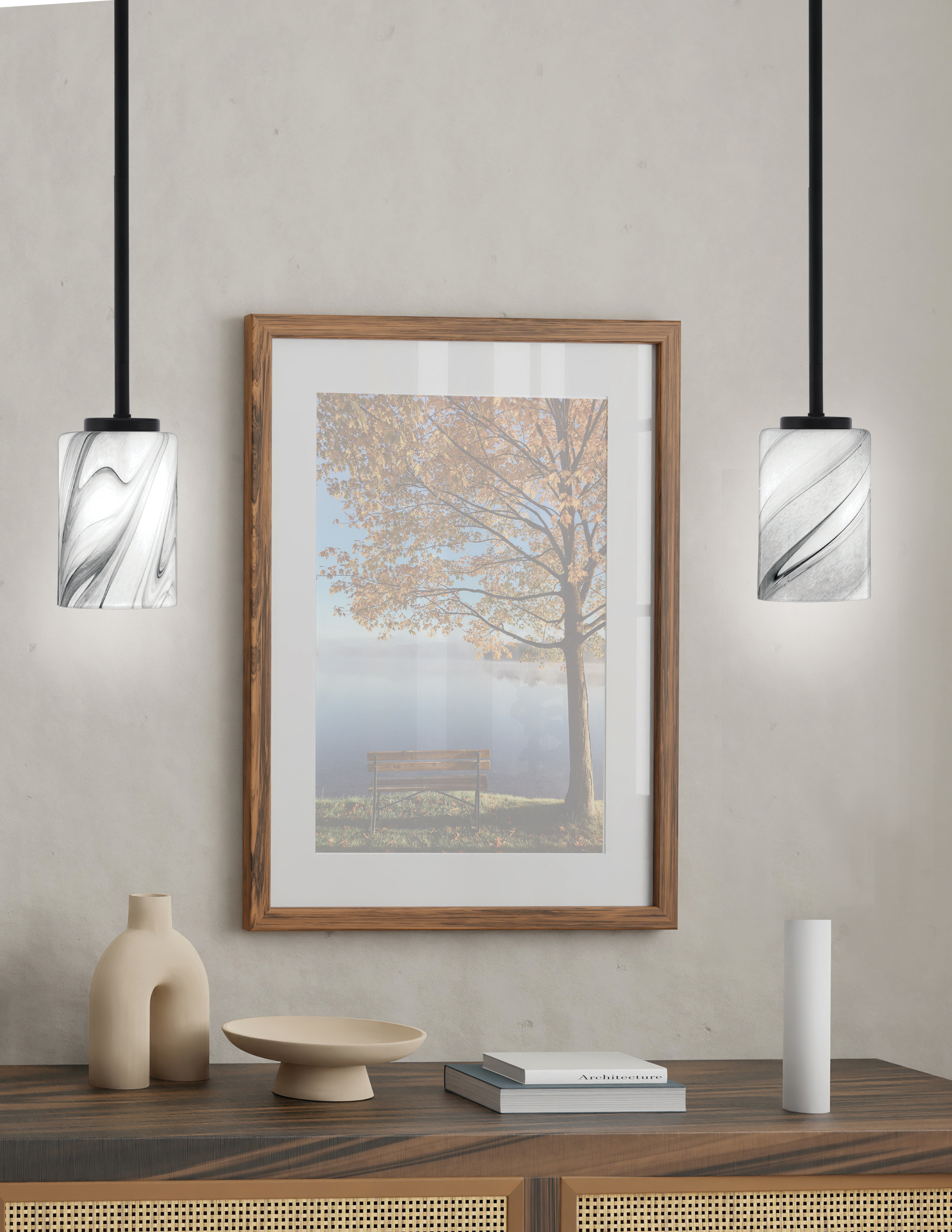 Toltec Lighting 6201-MB-3009 Sandia 1 Light Stem Mini Pendant, Matte Black Finish, 4″ Onyx Swirl Glass