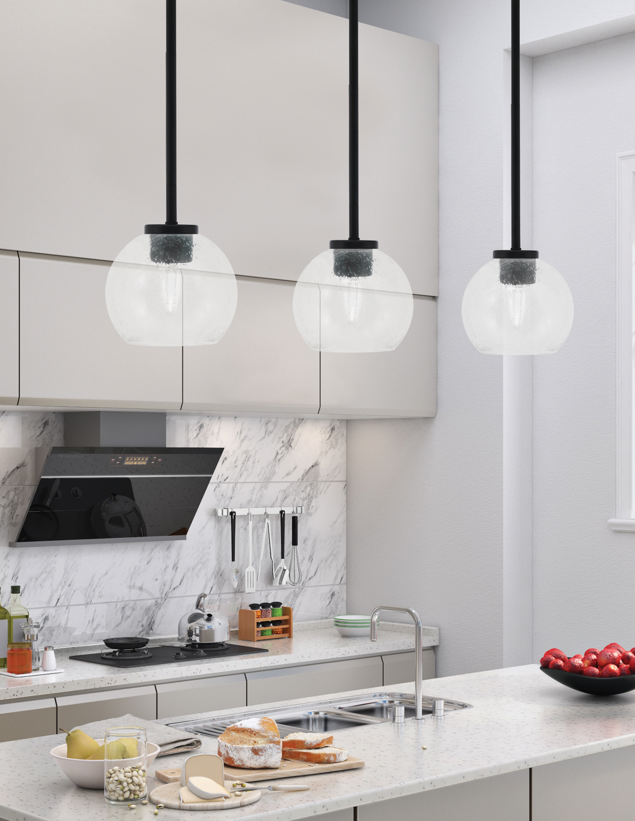 Introducing The Sandia 1 Light Stem Mini Pendant, A Perfect Blend Of Modern Design And Timeless Style. Featuring A Striking Matte Black Finish, This Pendant Light Adds An Elegant Touch To Any Room. The 5.75″ Clear Bubble Glass Shade Diffuses Light Beautifully, Creating A Warm And Inviting Atmosphere.