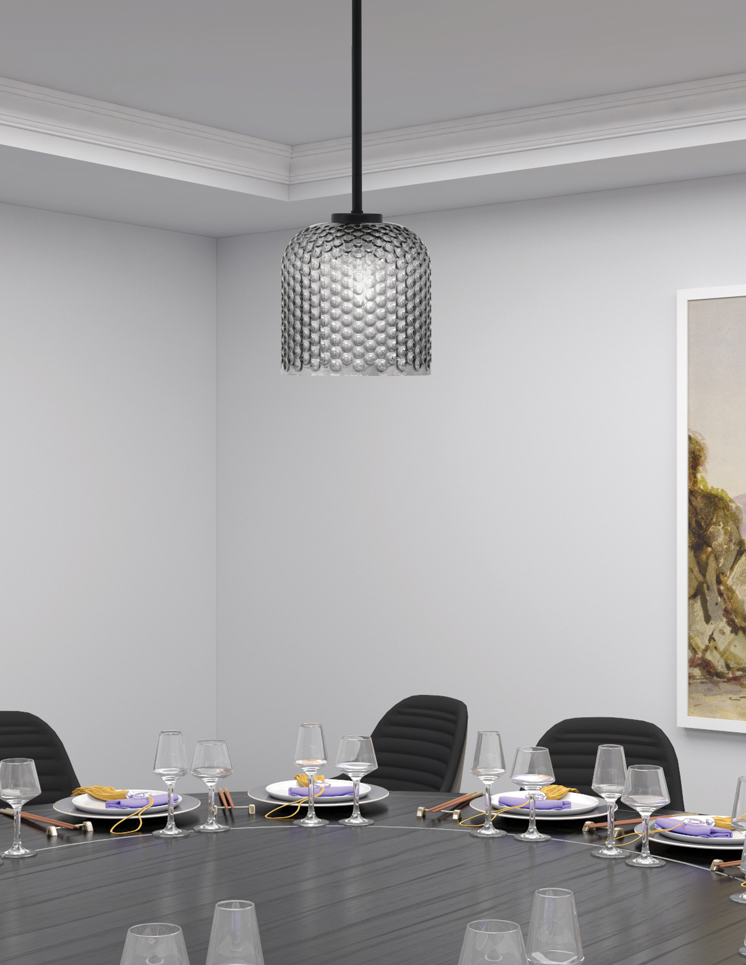 Toltec Lighting 6201-MB-4912 Sandia 1 Light Stem Mini Pendant, Matte Black Finish, 7″ Smoke Textured Glass