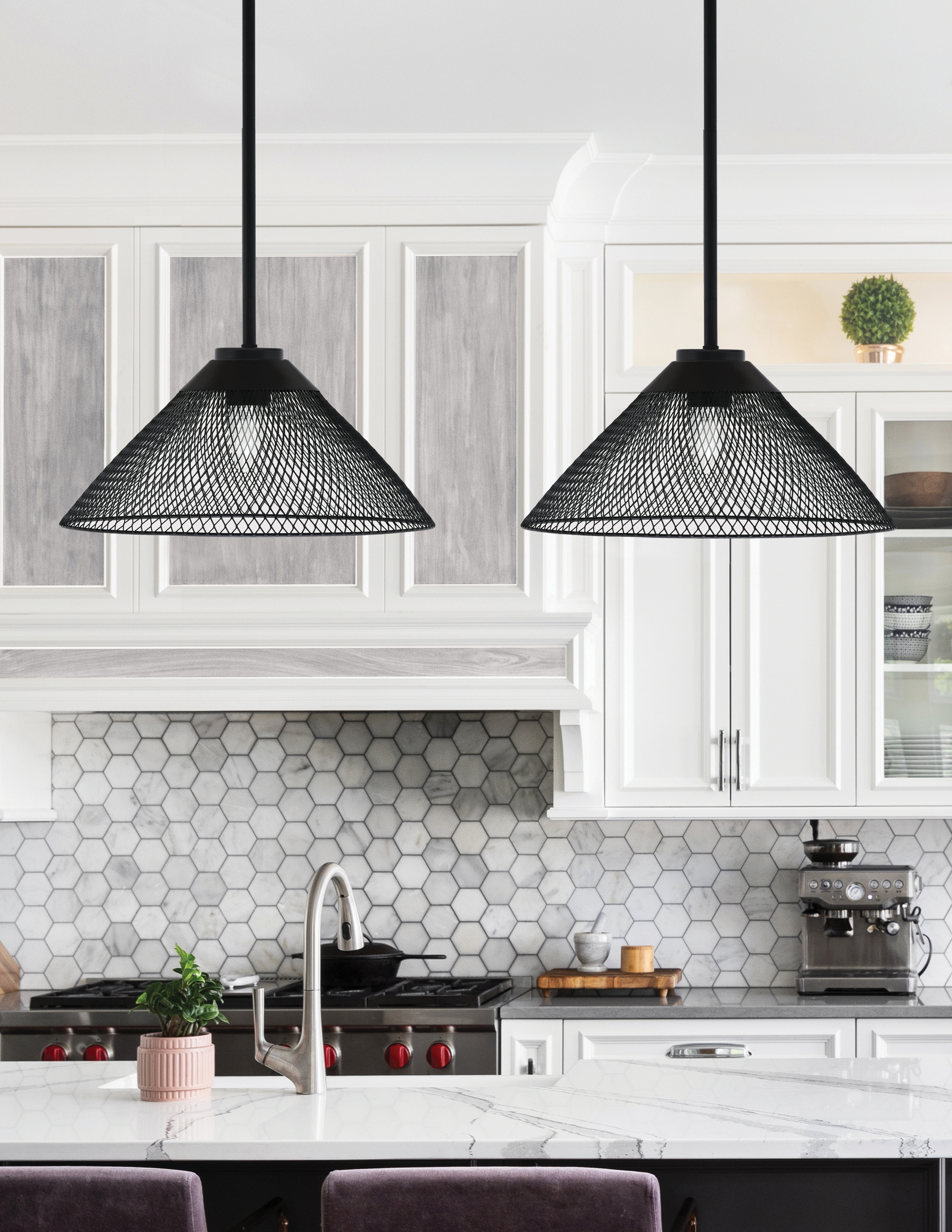 Toltec Lighting 6201-MB-808-MB Sandia 1 Light Stem Pendant, Matte Black Finish, 14″ Matte Black Cone Mesh Metal Shade