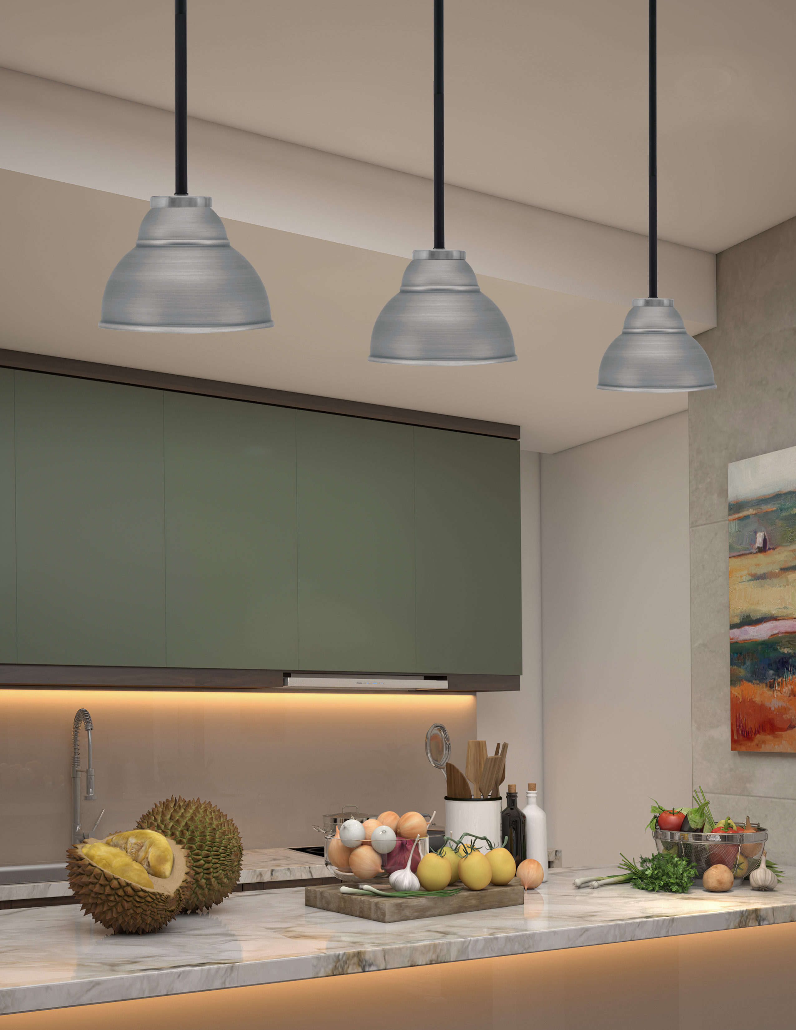 Introducing the Sandia 1 Light Stem Mini Pendant, a Stunning Addition to Any Space. Featuring a Sleek Matte Black & Graphite Finish, This Pendant Light Exudes Modern Elegance. Its Unique 7″ Graphite Double Bubble Metal Shade Creates a Warm Ambiance, Perfect for Overhead Lighting.