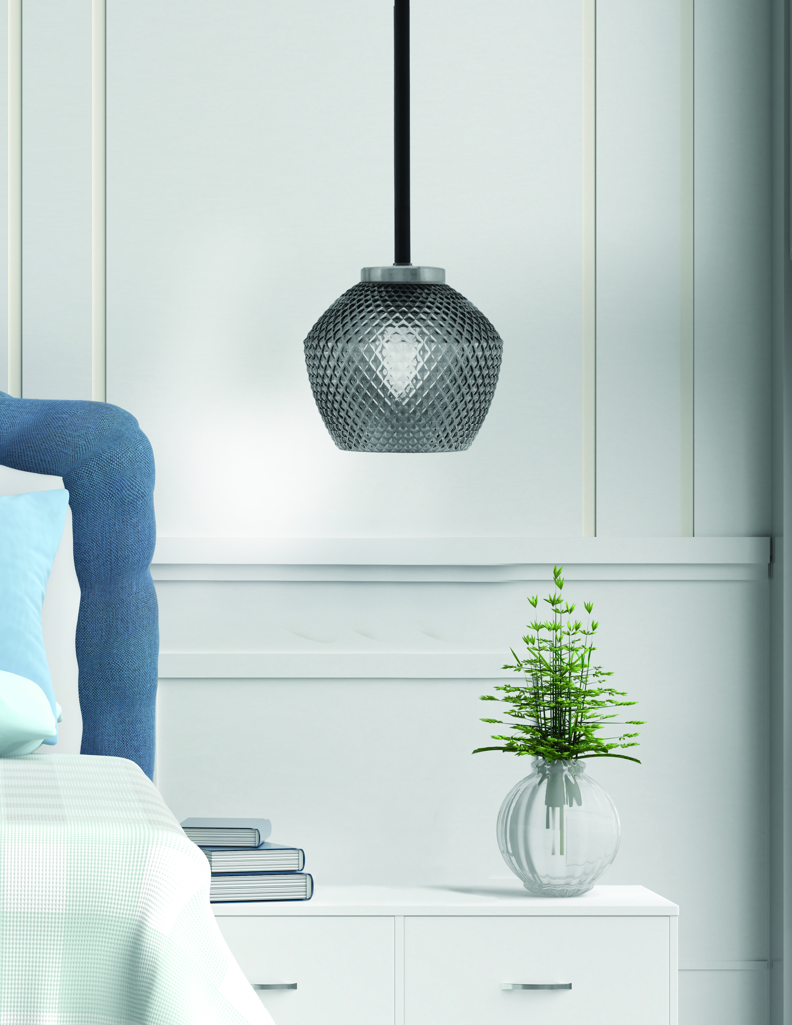 Introducing the Sandia 1 Light Stem Mini Pendant, a Stunning Addition to Any Space. Featuring a Sleek Matte Black & Graphite Finish, This Pendant Lights Up Your Room with Stylish Elegance. The 6″ Smoke Textured Glass Shade Provides a Unique Touch, Creating a Warm and Inviting Ambiance.