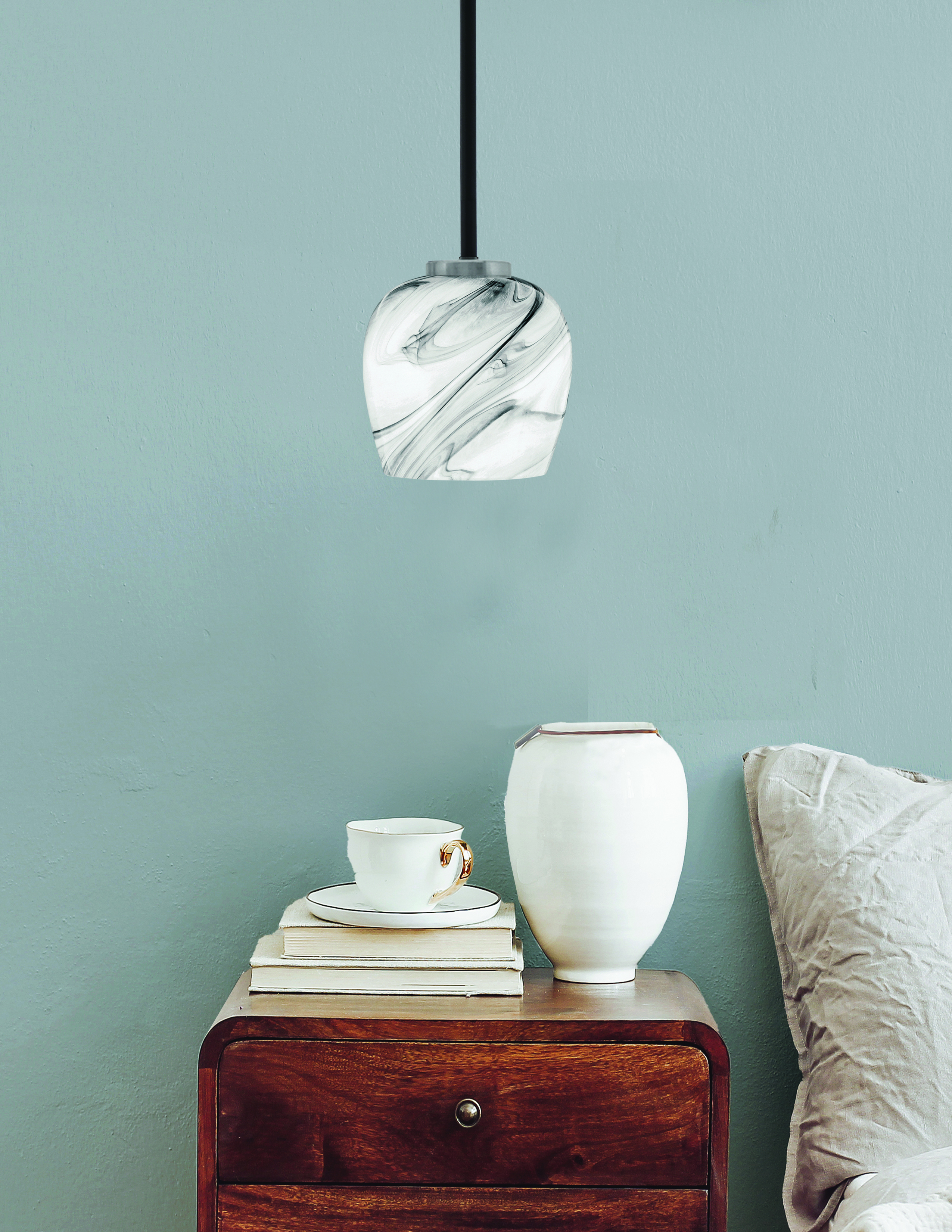 Toltec Lighting 6201-MBGP-4819 Sandia 1 Light Stem Mini Pendant, Matte Black & Graphite Finish, 6″ Onyx Swirl Glass