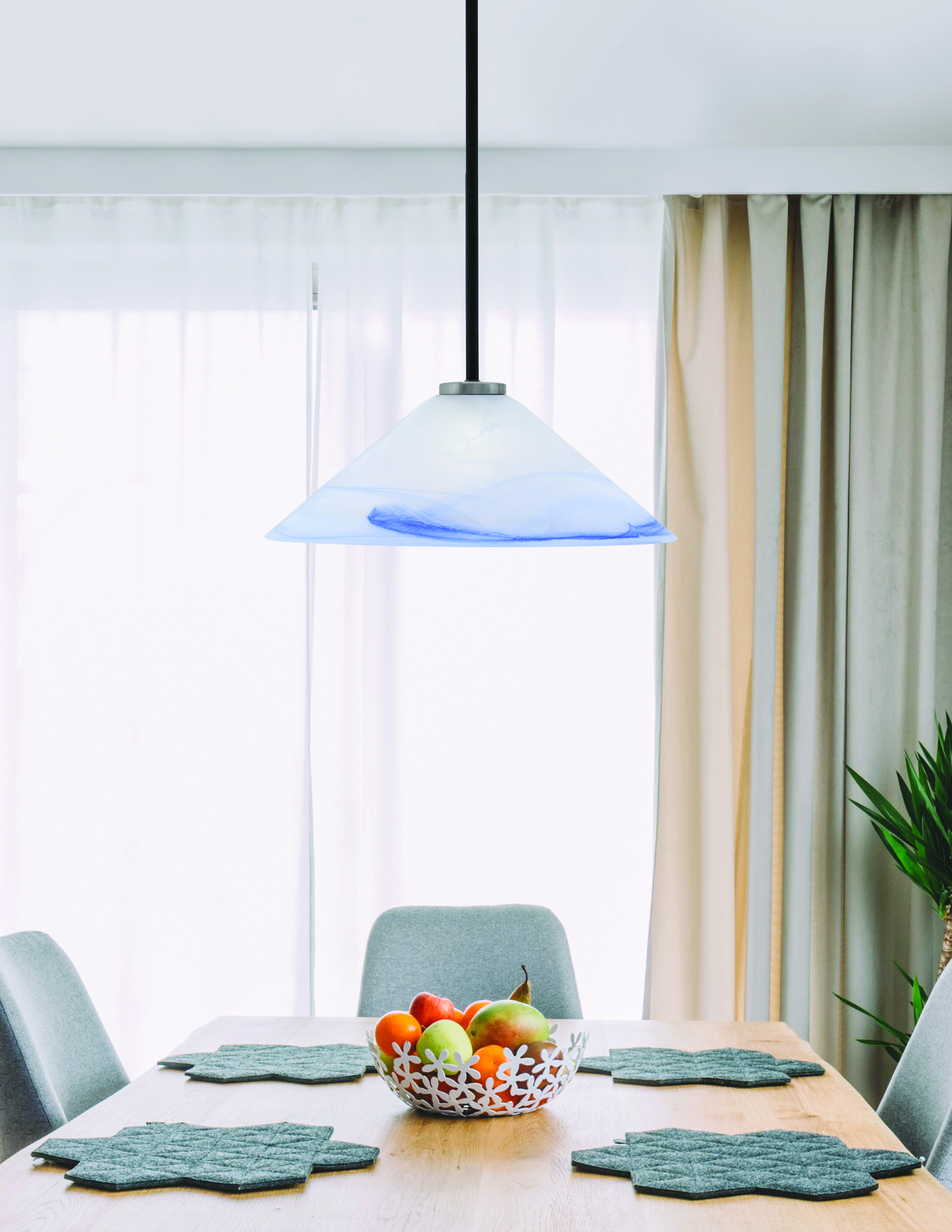 Toltec Lighting 6201-MBGP-514 Sandia 1 Light Stem Pendant, Matte Black & Graphite Finish, 16″ Blue Swirl Glass