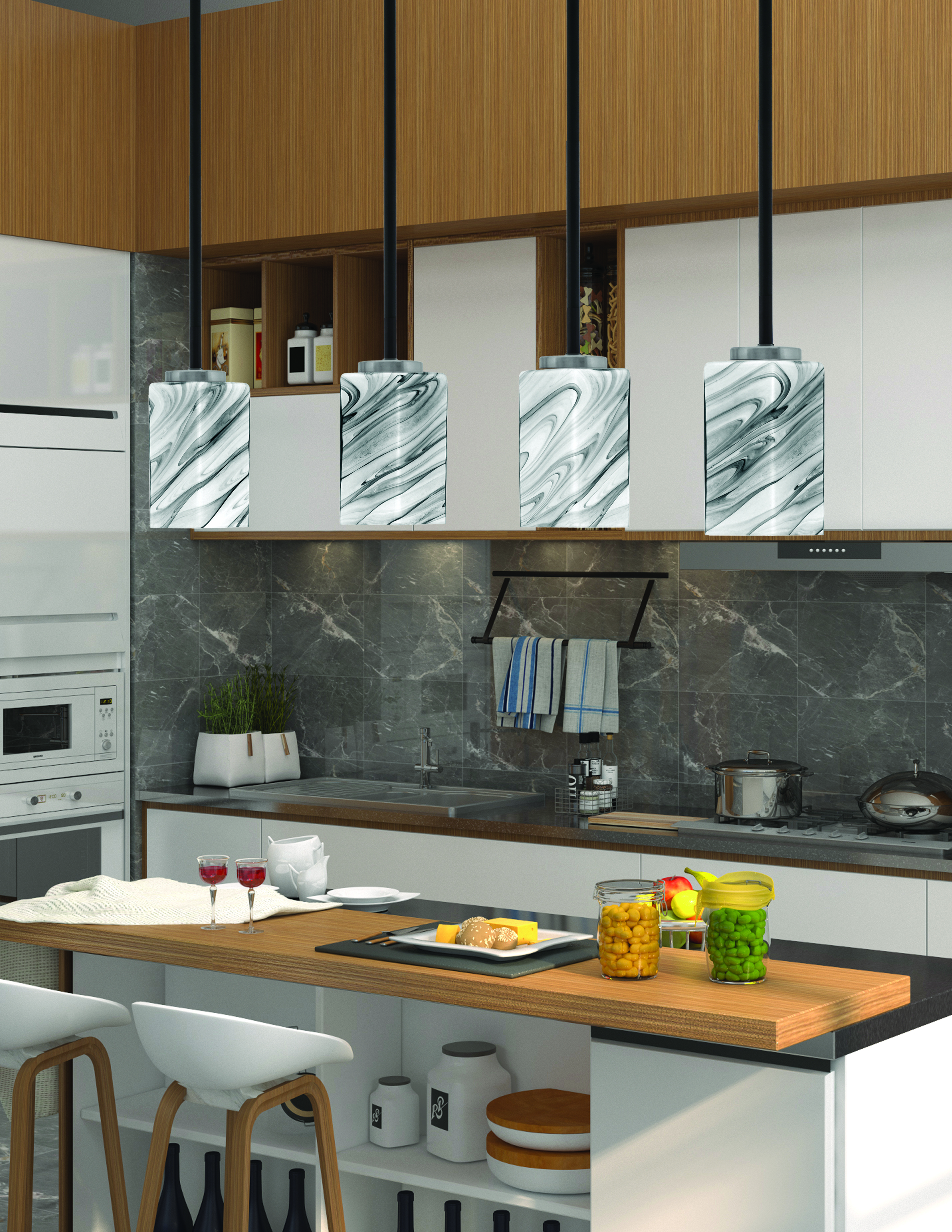 Toltec Lighting 6201-MBGP-549 Sandia 1 Light Stem Mini Pendant, Matte Black & Graphite Finish, 3.5″ Square Onyx Swirl Glass