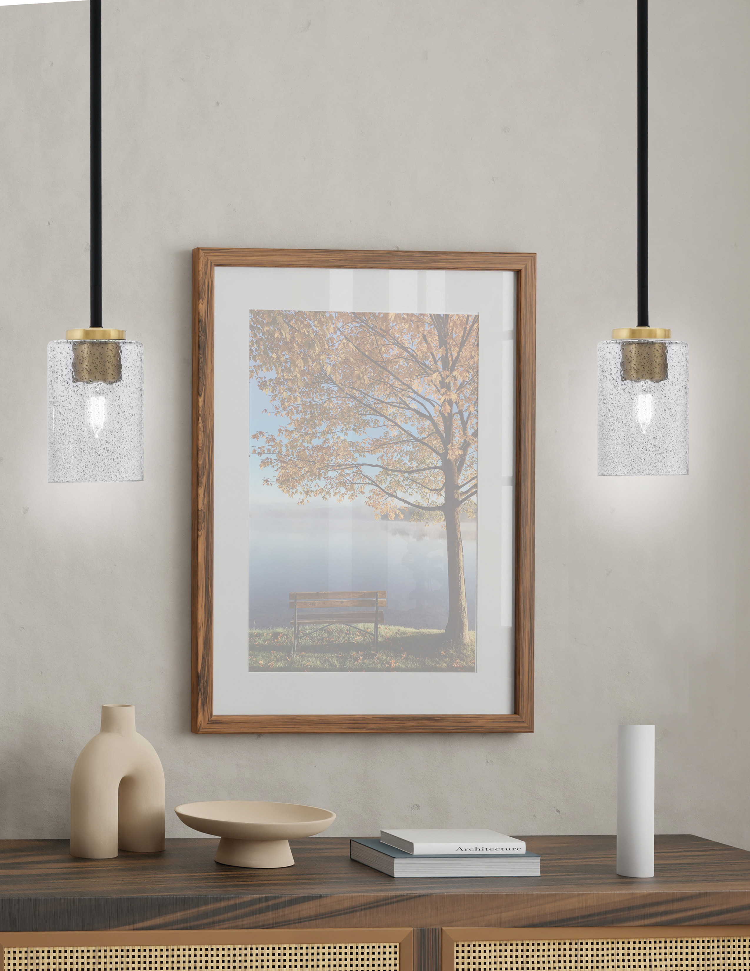 Illuminate Your Space with the Sandia 1 Light Stem Mini Pendant. Featuring a Striking Matte Black and New Aged Brass Finish, This Pendant Exudes Contemporary Elegance. The 4-Inch Smoke Bubble Glass Shade Adds a Touch of Sophistication, Creating a Warm and Inviting Ambiance.