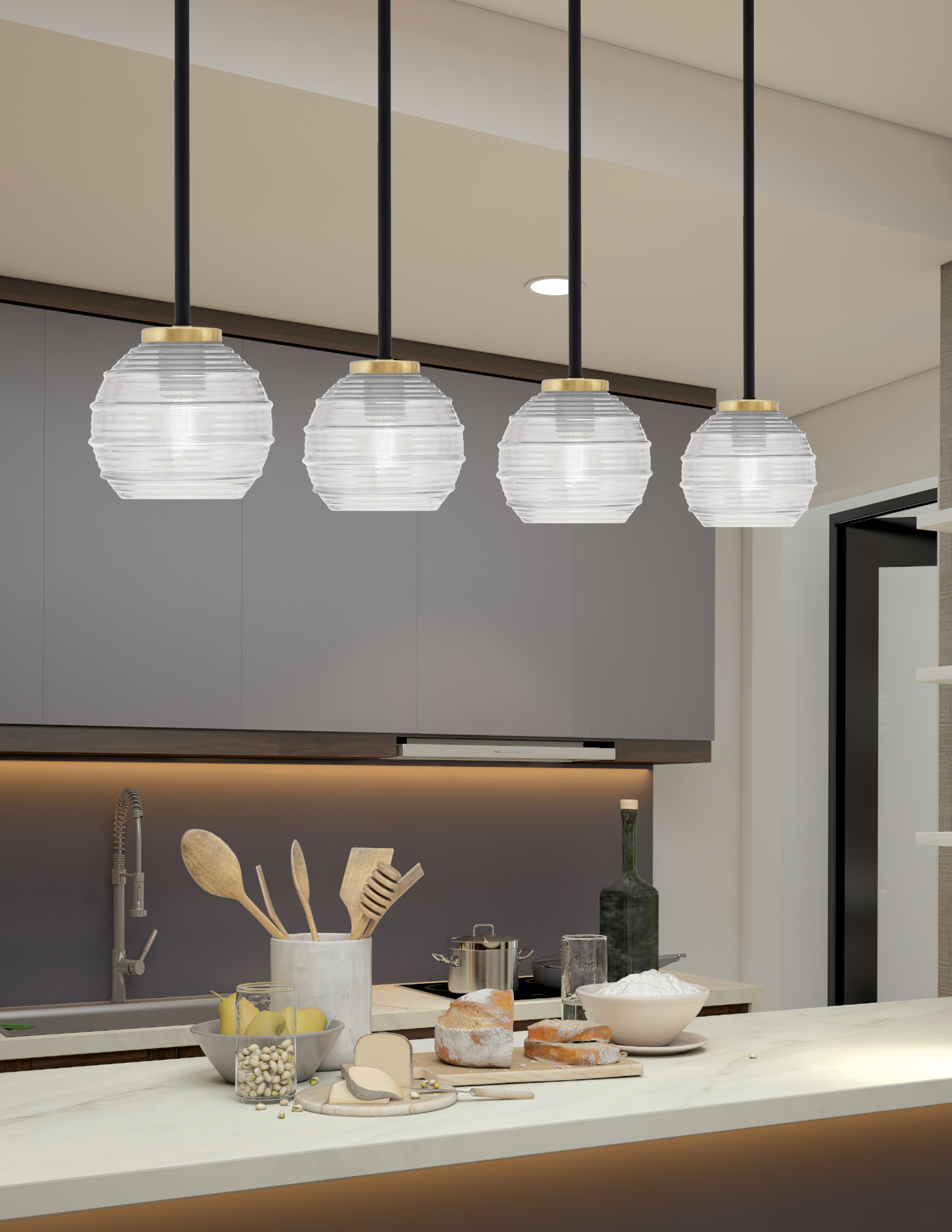 Introducing The Sandia 1 Light Stem Mini Pendant, A Stunning Addition To Any Space With Its Eye-Catching Design. This Pendant Features A Striking Matte Black And New Aged Brass Finish That Effortlessly Blends Modern Elegance With Timeless Charm. The 6″ Clear Ribbed Glass Shade Creates A Warm, Inviting Glow, Making It Perfect For Kitchen Islands, Dining Areas, Or Living Rooms.