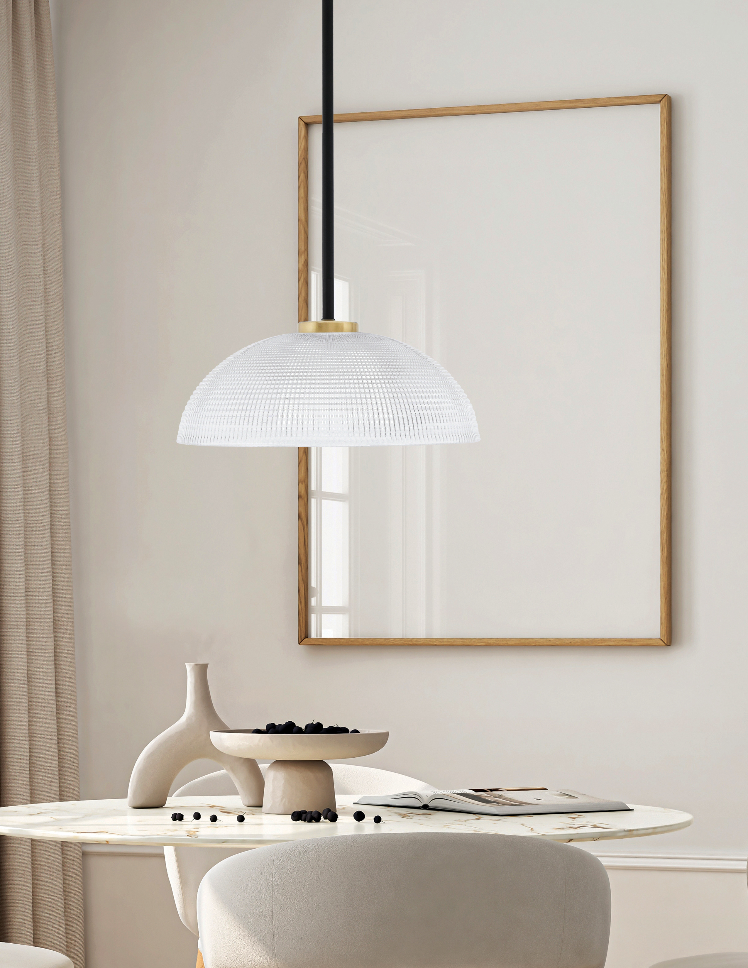 Toltec Lighting 6201-MBNAB-540 Sandia 1 Light Stem Pendant, Matte Black & New Aged Brass Finish, 13″ Clear Ribbed Glass