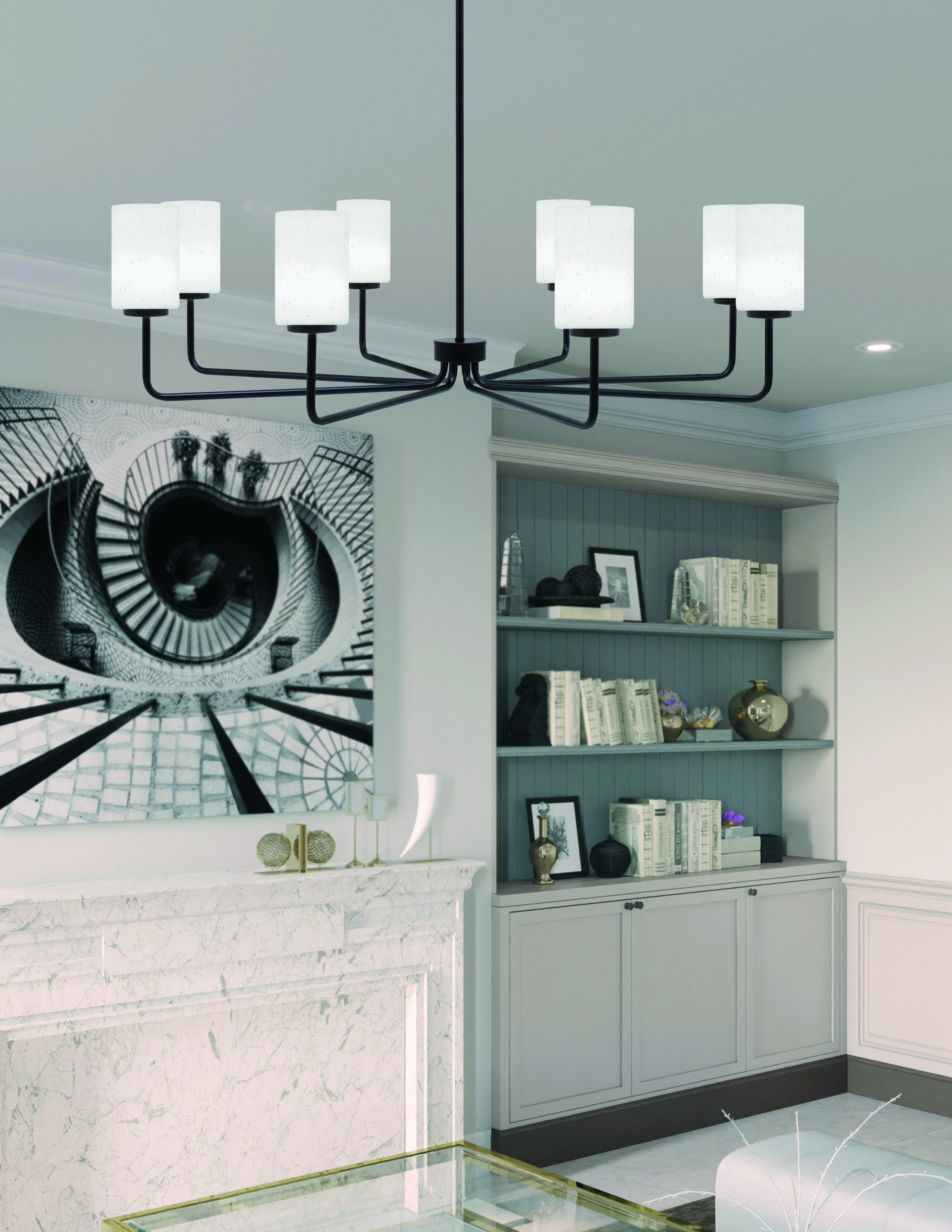 Bring warmth and contemporary style to your home with the Sandia 6 Light Chandelier. Featuring a bold matte black finish, this chandelier is paired with six 4″ white muslin glass shades, which provide a soft, inviting glow. This chandelier is an ideal choice for dining rooms, living rooms, kitchens, or entryways, adding both functional lighting and a sophisticated design element.