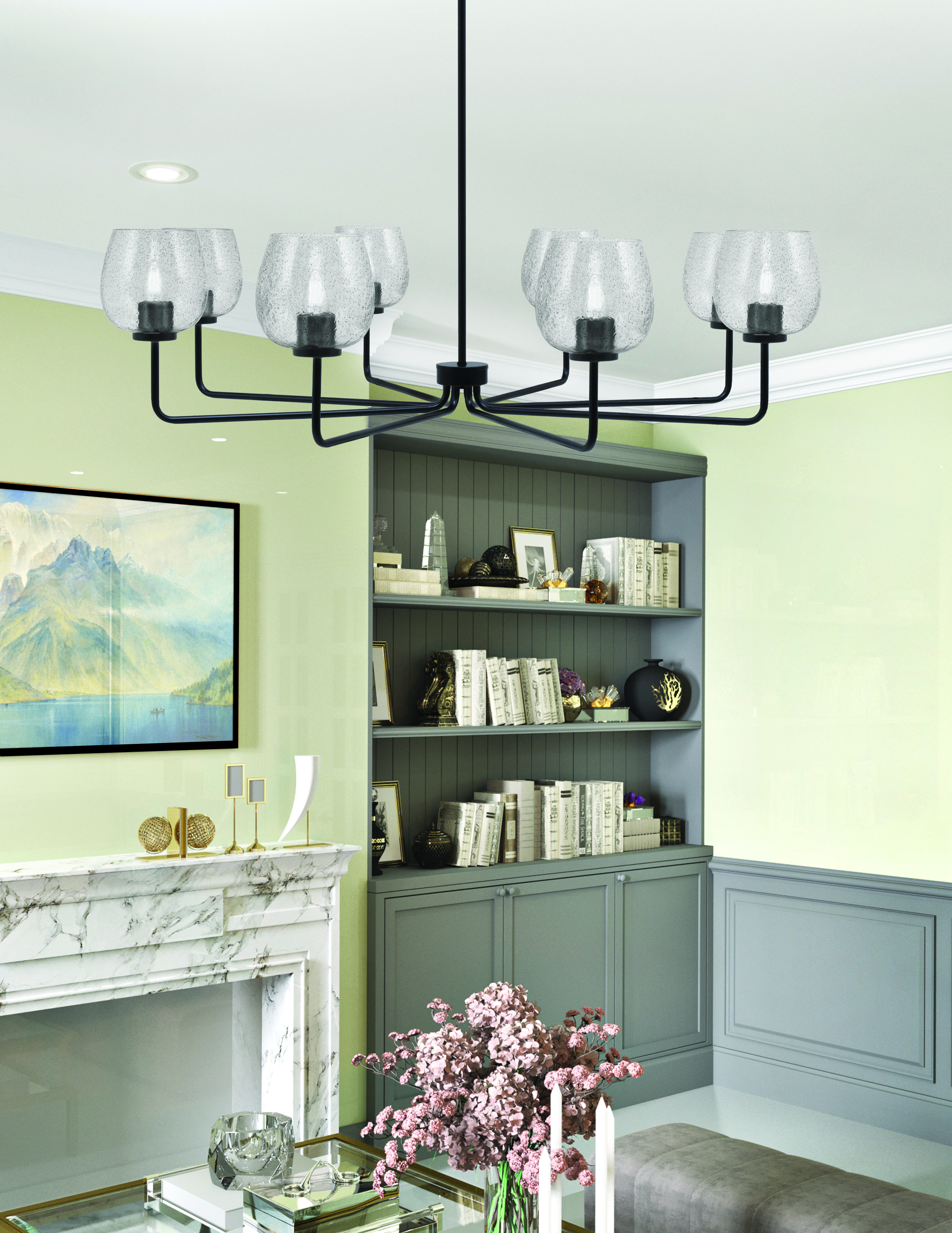 Transform your space with the bold, contemporary elegance of the Sandia 6 Light Chandelier. Featuring a striking matte black finish, this chandelier showcases six 6″ smoke bubble glass shades. The smoky hue of the glass pairs beautifully with the matte black frame, creating a modern and dynamic focal point in your home.