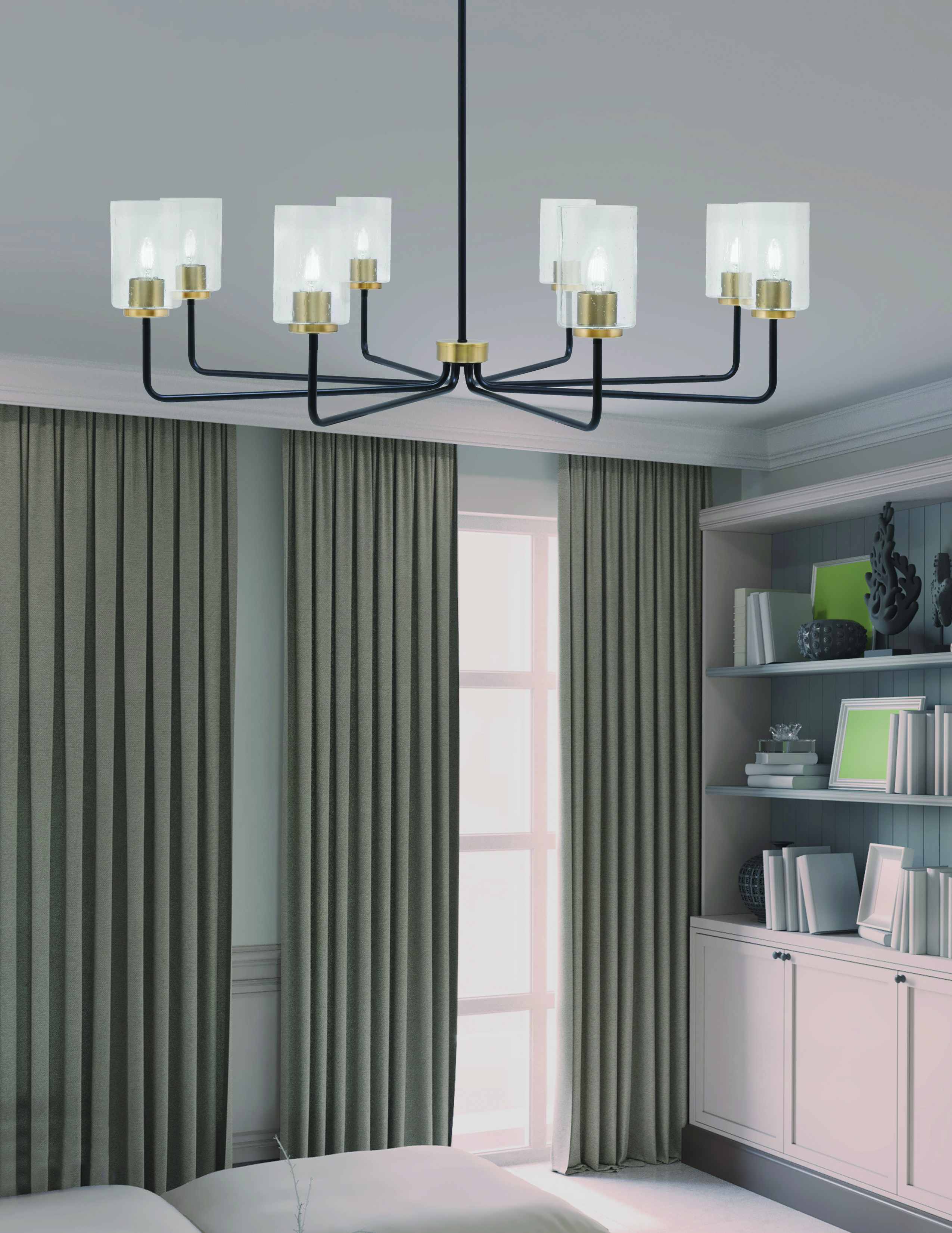 Illuminate Your Space With The Stunning Sandia 8 Light Chandelier, Featuring A Striking Matte Black And New Age Brass Finish That Adds A Touch Of Modern Elegance. Each Light Is Encased In A 4″ Clear Bubble Glass Shade, Creating A Beautiful Play Of Light And Texture That Enhances Any Room”s Ambiance. Perfect For Dining Rooms, Living Areas, Or Entryways, This Chandelier Combines Style And Functionality To Transform Your Home.