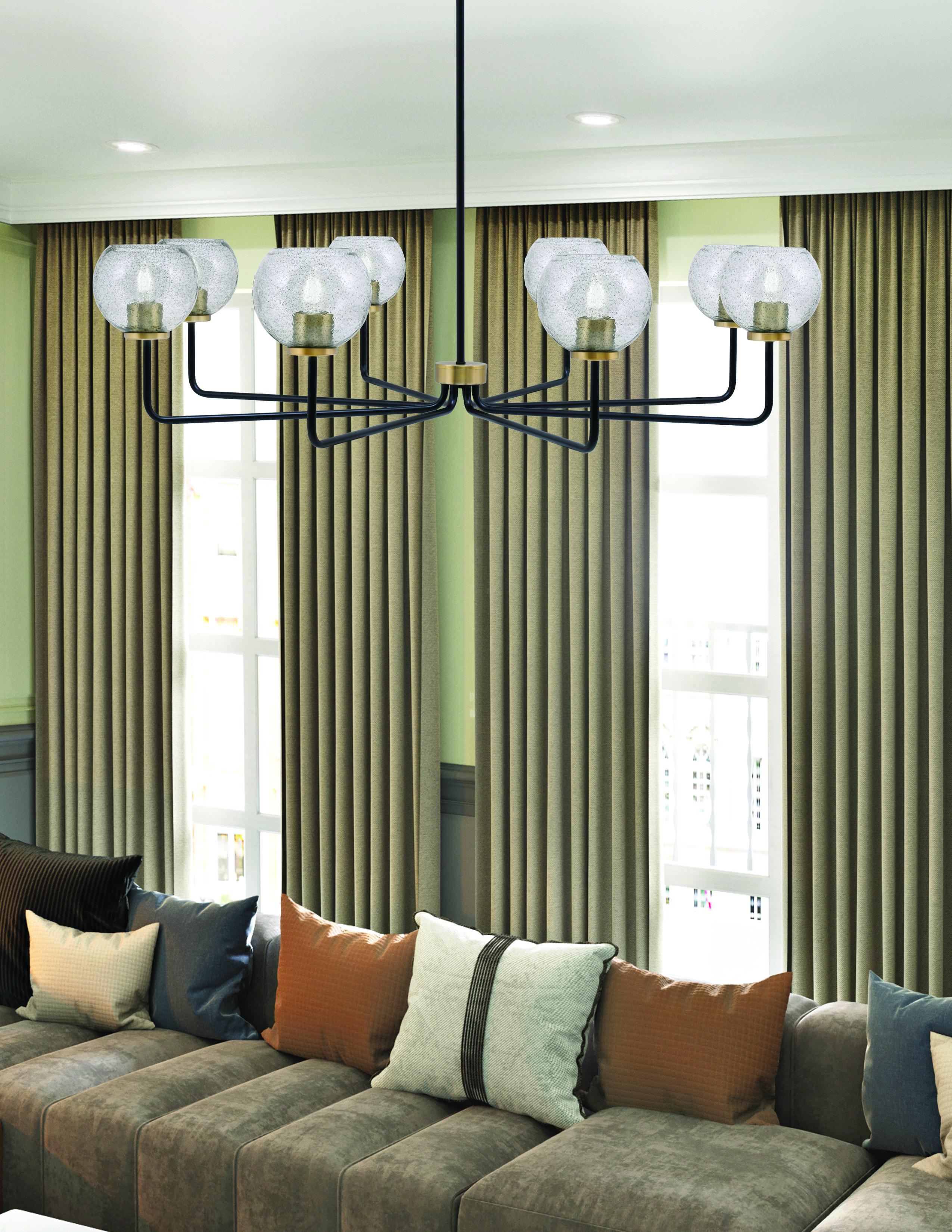 Illuminate Your Space With The Stunning Sandia 8 Light Chandelier, Featuring A Striking Matte Black And New Age Brass Finish That Adds A Touch Of Modern Elegance. Each Light Is Adorned With A 5.75″ Smoke Bubble Glass Shade, Creating A Beautiful Play Of Light And Shadow In Any Room. Perfect For Dining Areas, Living Rooms, Or Entryways, This Chandelier Combines Style And Functionality To Enhance Your Home”s Ambiance.