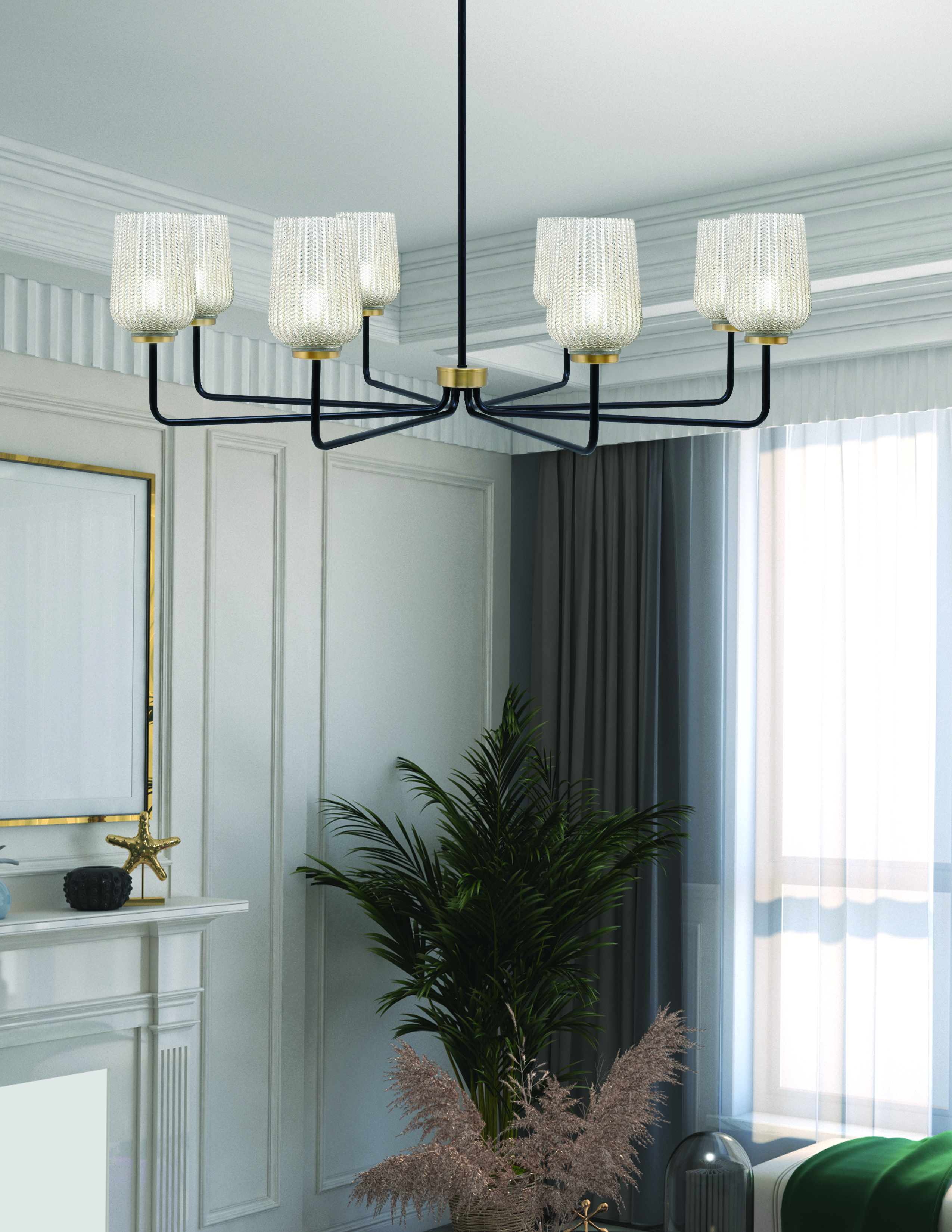 Add a touch of luxury to your space with the Sandia 8-Light Chandelier. The combination of a Matte Black & New Age Brass Finish with 5″ Silver Textured Glass Shades creates a refined, contemporary look that will elevate any room. This chandelier is perfect for modern dining rooms, living rooms, or entryways, providing a striking focal point.