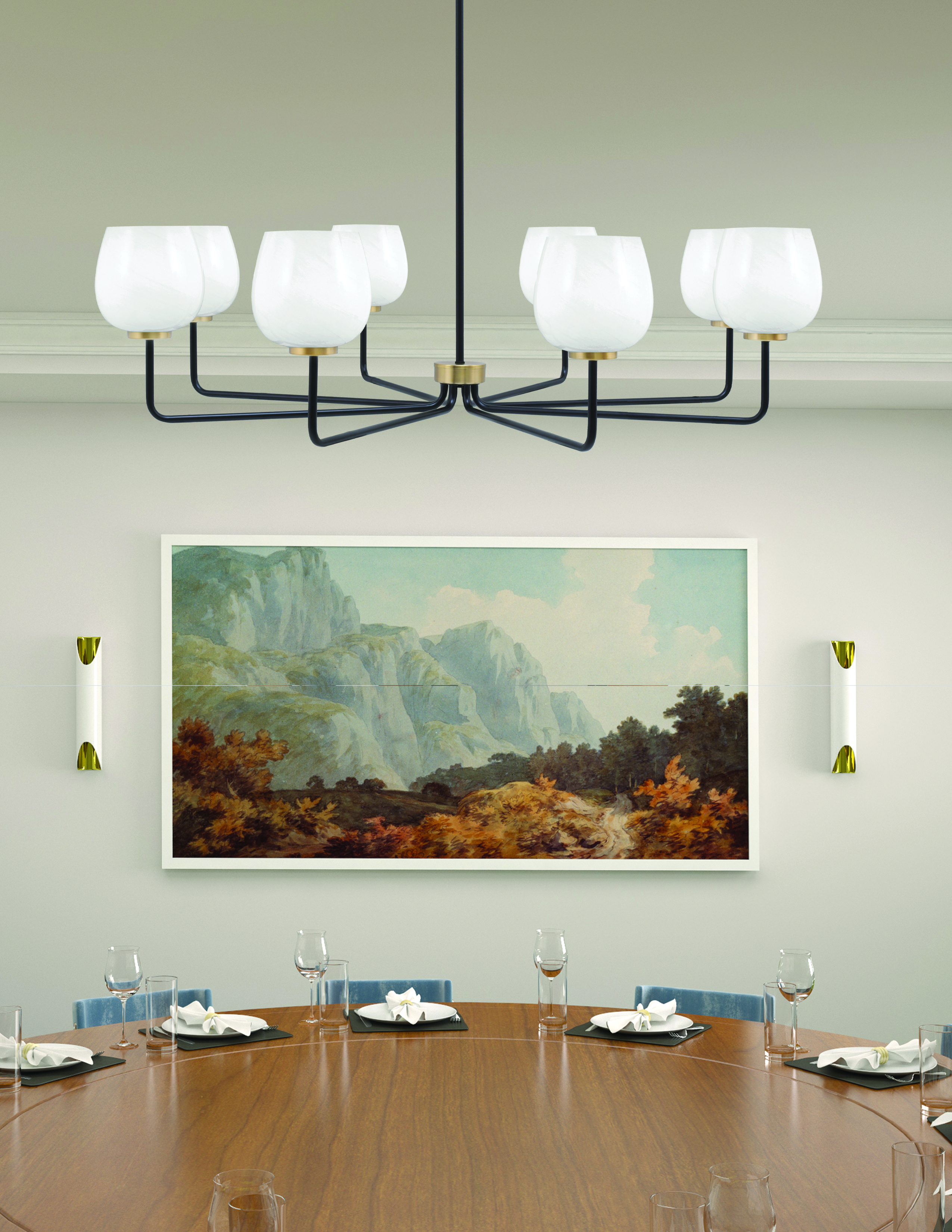 Illuminate Your Space With The Stunning Sandia 8 Light Chandelier, Featuring A Striking Matte Black And New Age Brass Finish That Adds A Touch Of Elegance To Any Room. The 6″ White Marble Glass Shades Provide A Soft, Diffused Glow, Creating A Warm And Inviting Atmosphere For Gatherings And Special Occasions. Perfect For Dining Rooms, Living Areas, Or Entryways, This Chandelier Combines Modern Design With Timeless Style.